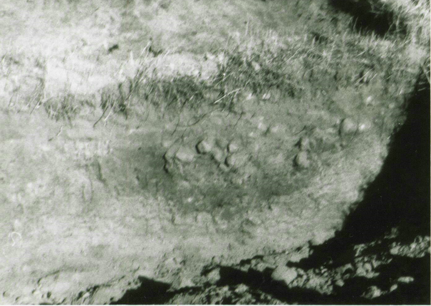 8. Pierwszy odkryty bruk kamienny, mocno rozwleczony przez orkę.