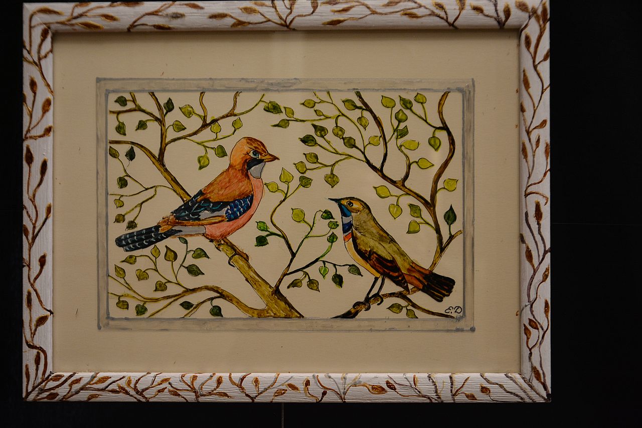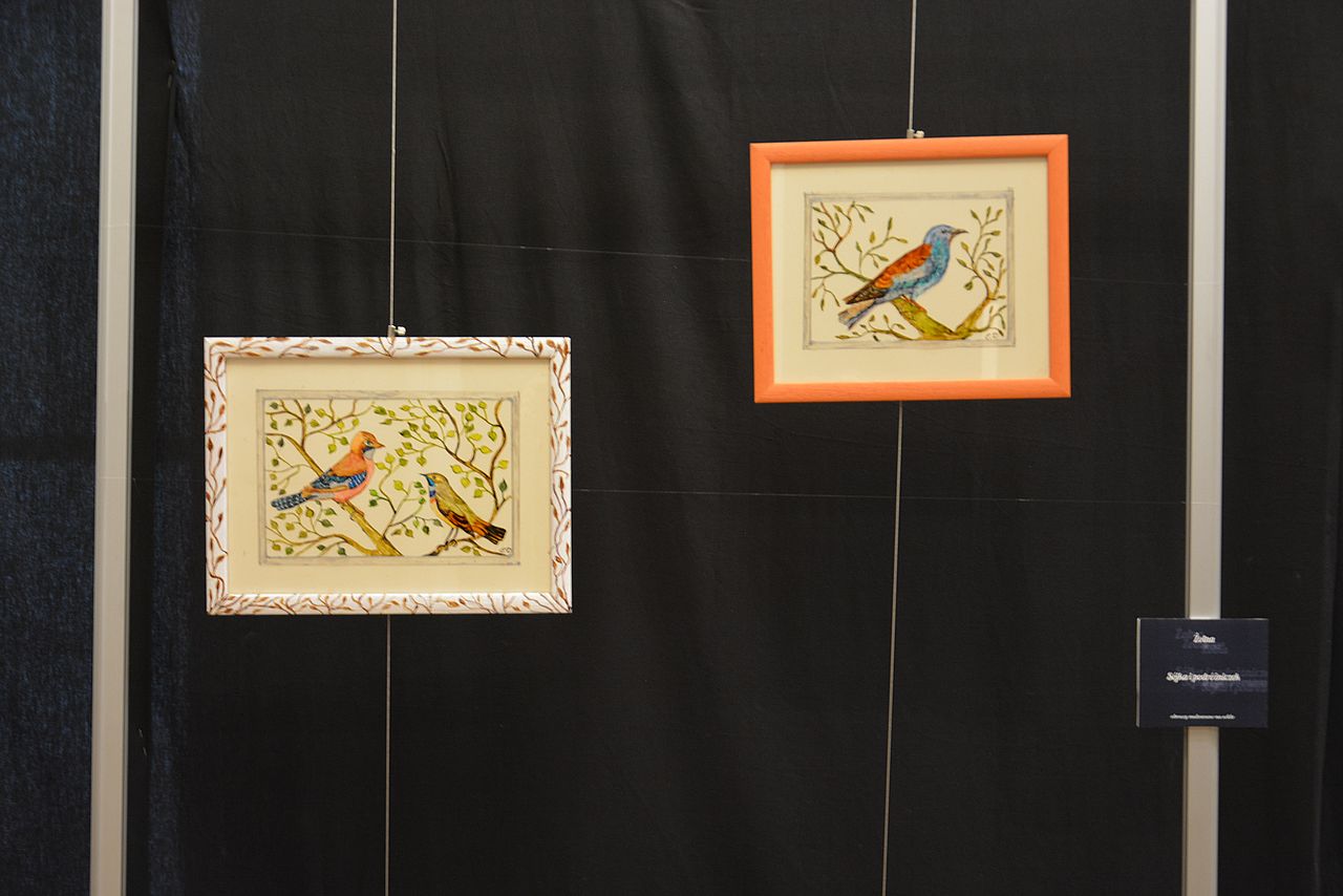 Przysiadły na chwilę w drodze ku tylko sobie znanym celom. Uwięzione na chwilę w szklanej tafli, która zatrzymała je w wędrówce. Barwy, kształty, dążenia, instynkty i nadzieje skute lodem. Przerwane podniebne podróże, zatopione w przejrzystym tu i teraz.