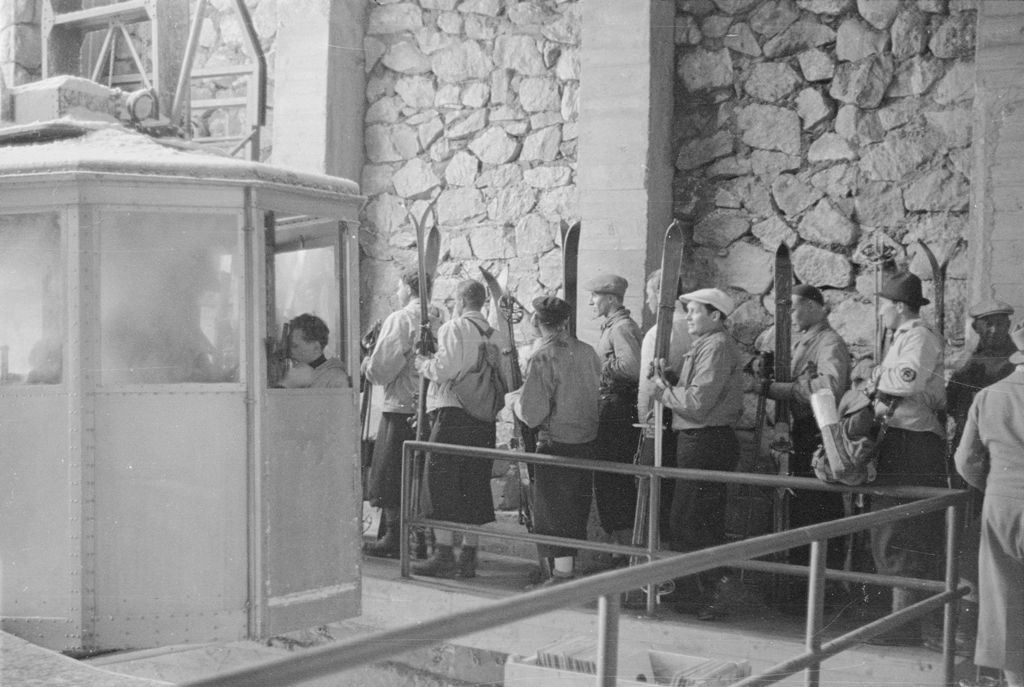 Kolejka do wagonika na Kasprowy, lata 30. XX w., ze zbiorów Muzeum Tatrzańskiego im. dra Tytusa Chałubińskiego w Zakopanem, fotografia prezentowana na wystawie