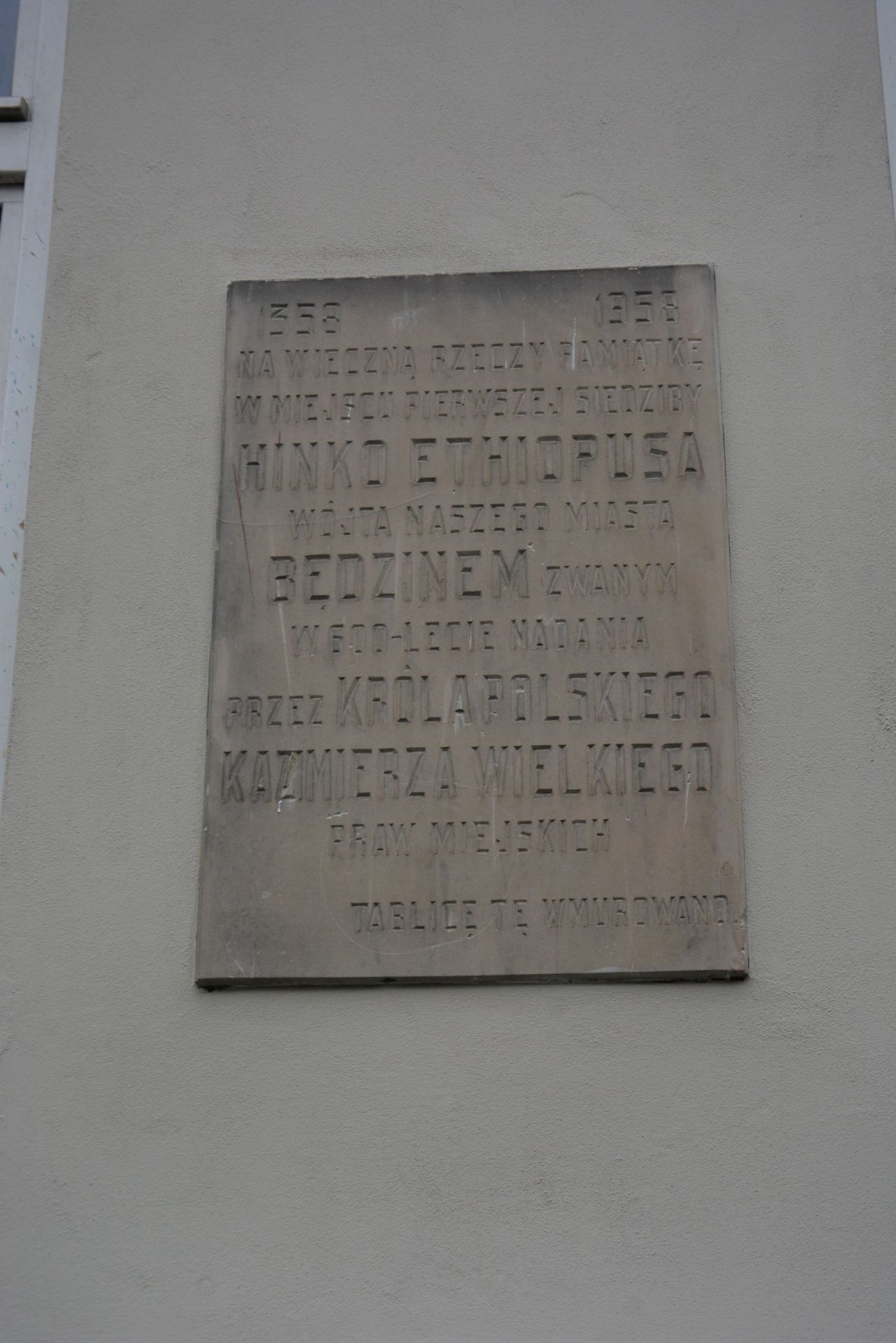 W 1958 z okazji 600 – lecia lokacji miasta w ścianę budynku od strony ulicy Czeladzkiej wmurowano pamiątkową tablicę upamiętniającą wspomniane obchody oraz domniemany gmerk pierwszego wójta Będzina – Hinko Ethiopusa.