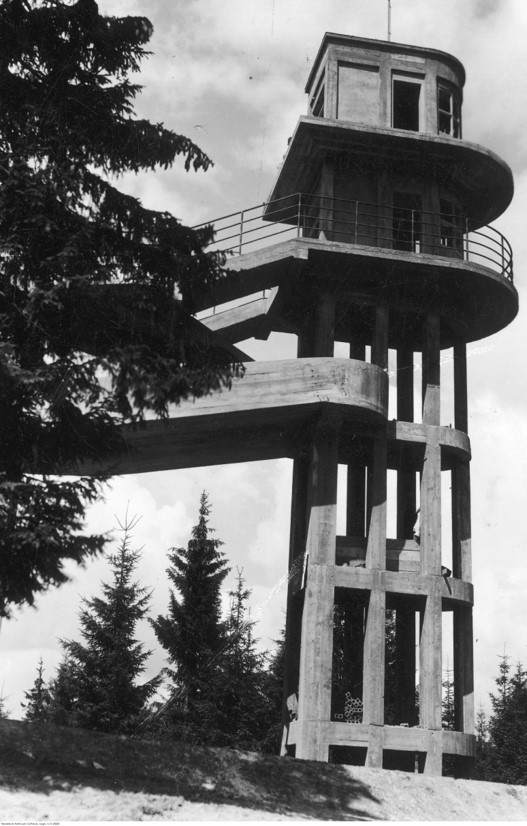 3. Tor saneczkowy w Krynicy. Betonowa wieża rozbiegowa, 1938 r., NAC.