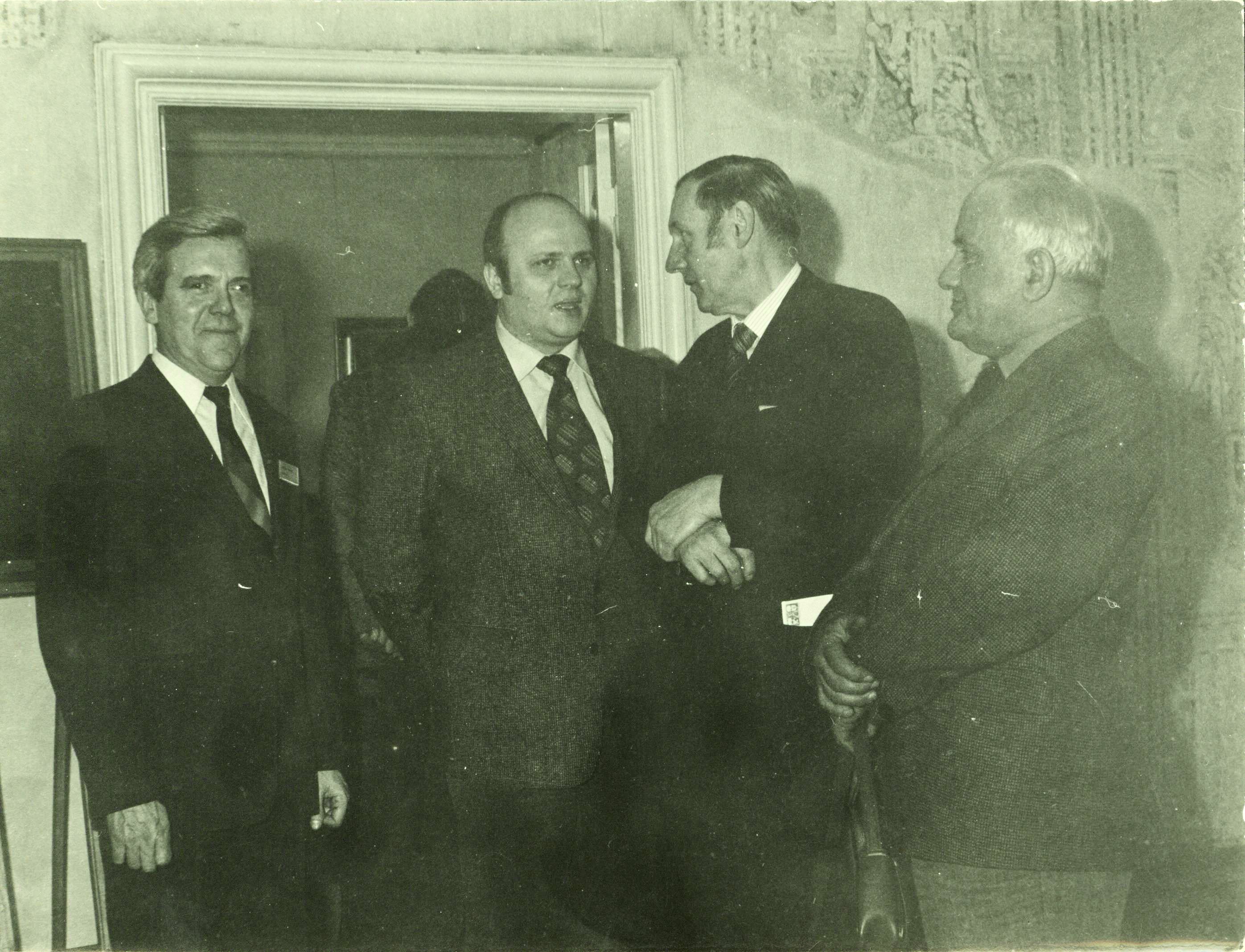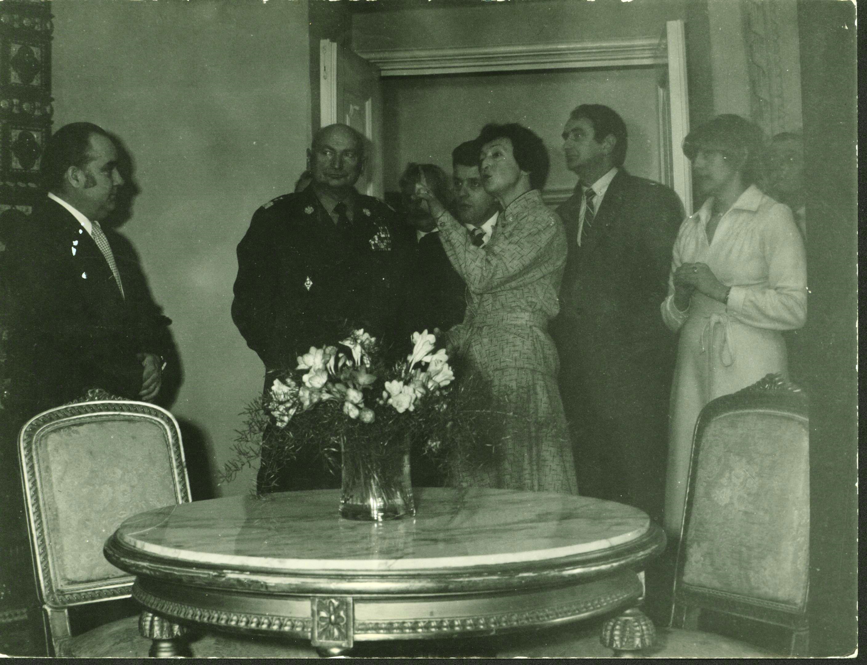 Wystawa wnętrz zabytkowych, oprowadza dyr. A. Daab, w mundurze gen. R. Paszkowski.