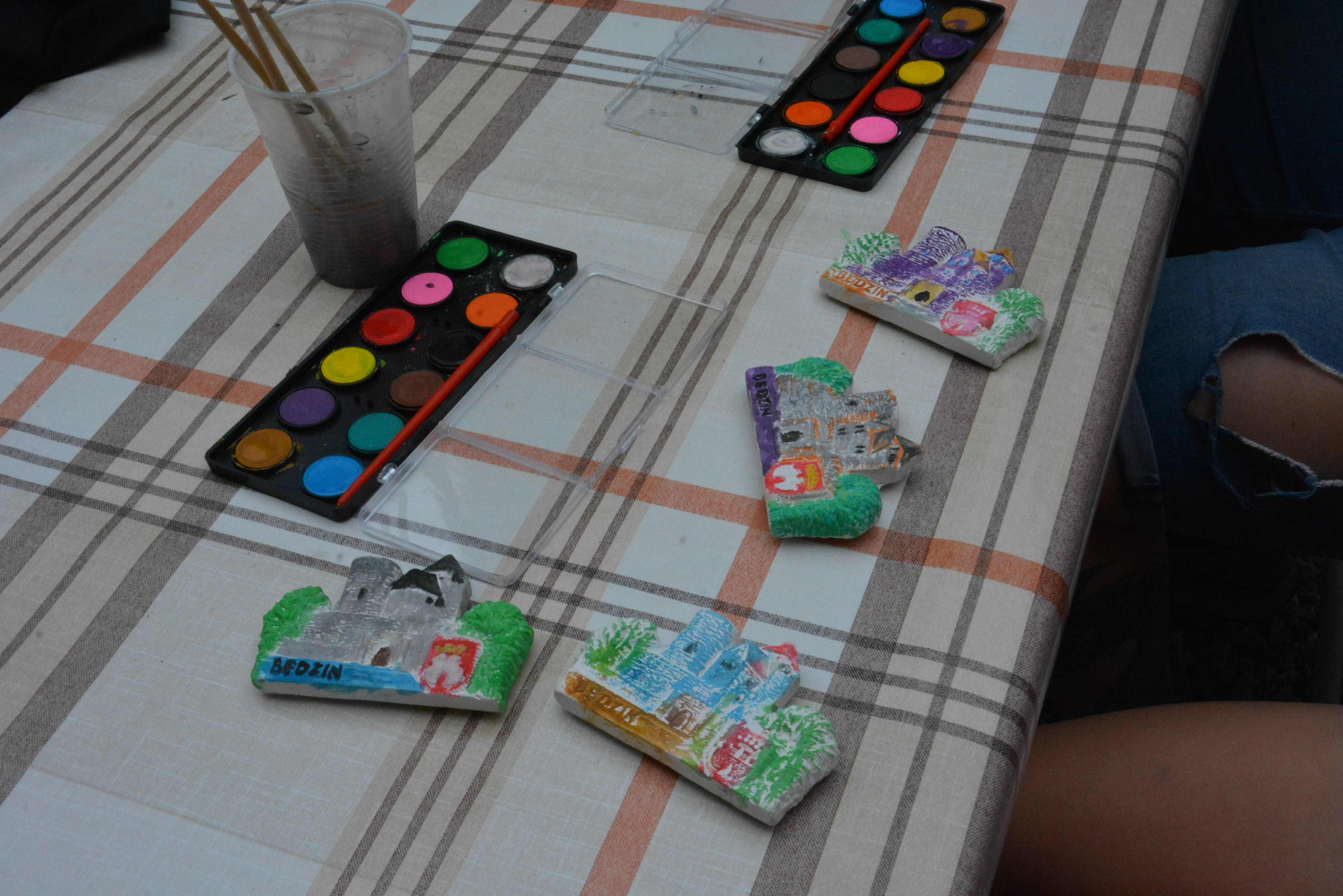 Oprócz stałych wystaw prezentowanych w zamku i pałacu – można też było obejrzeć nową wystawę czasową – „Zamki i pałace w Polsce”, która prezentuje prace plastyczne nadesłane na ogólnopolski konkurs pod patronatem Starosty Będzińskiego. Miłą pamiątką z dzisiejszego spotkania będzie zapewne własnoręcznie pomalowany magnes ukazujący będziński zamek. Do wspólnego malowania przyłączyli się nawet rodzice dzieci uczestniczących w zajęciach. Jutro przed uczestnikami kolejne zadania, być może odnajdą nawet skarb burgrabiego ….