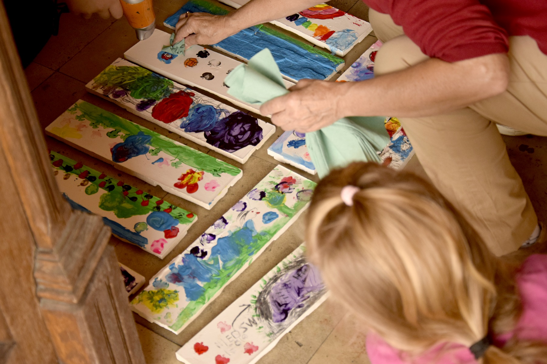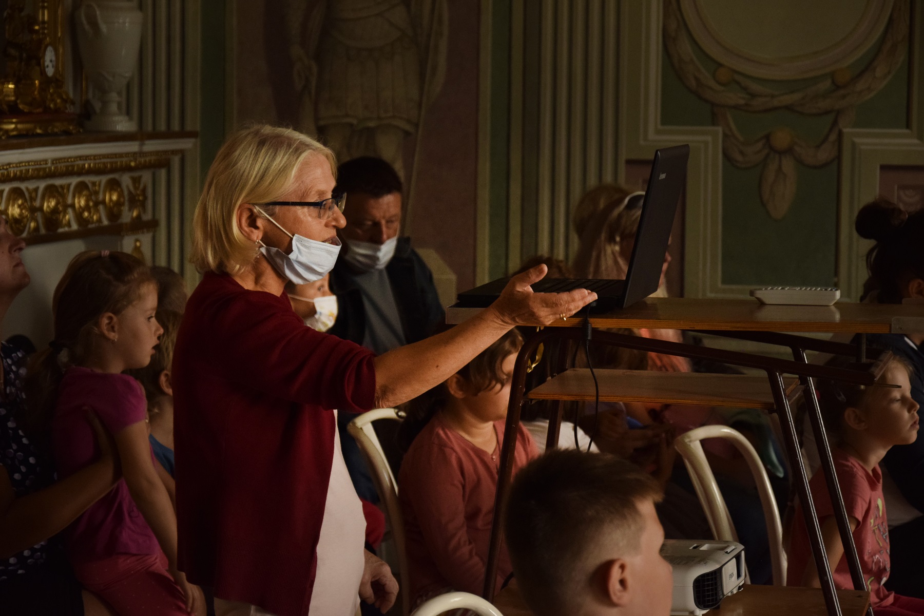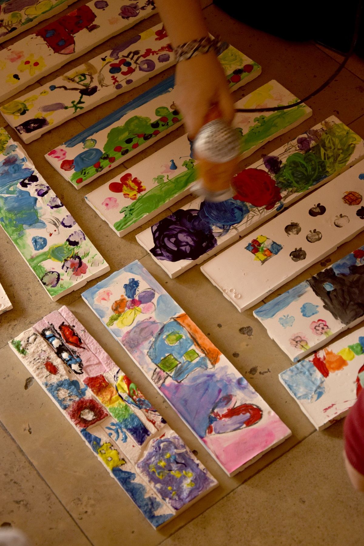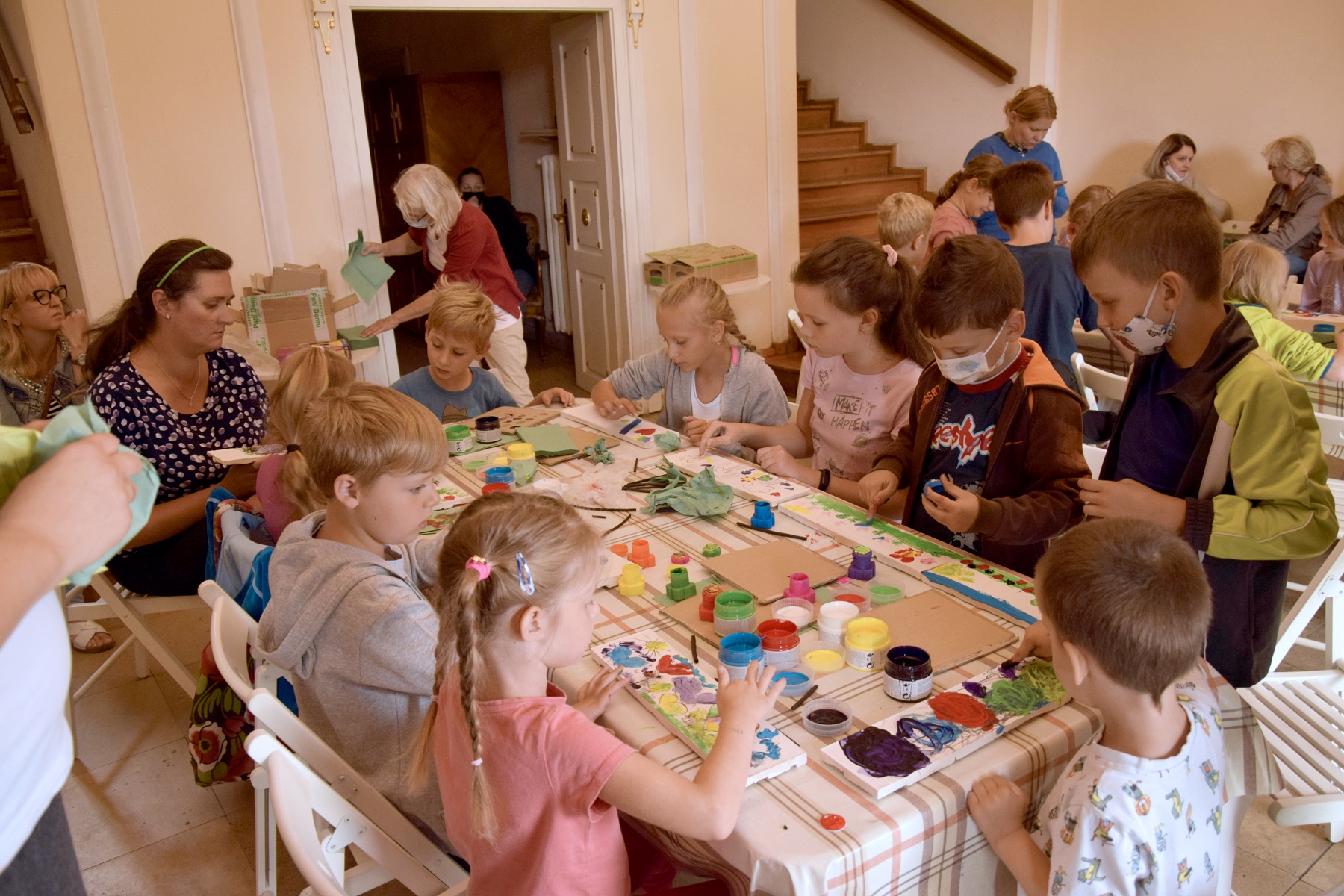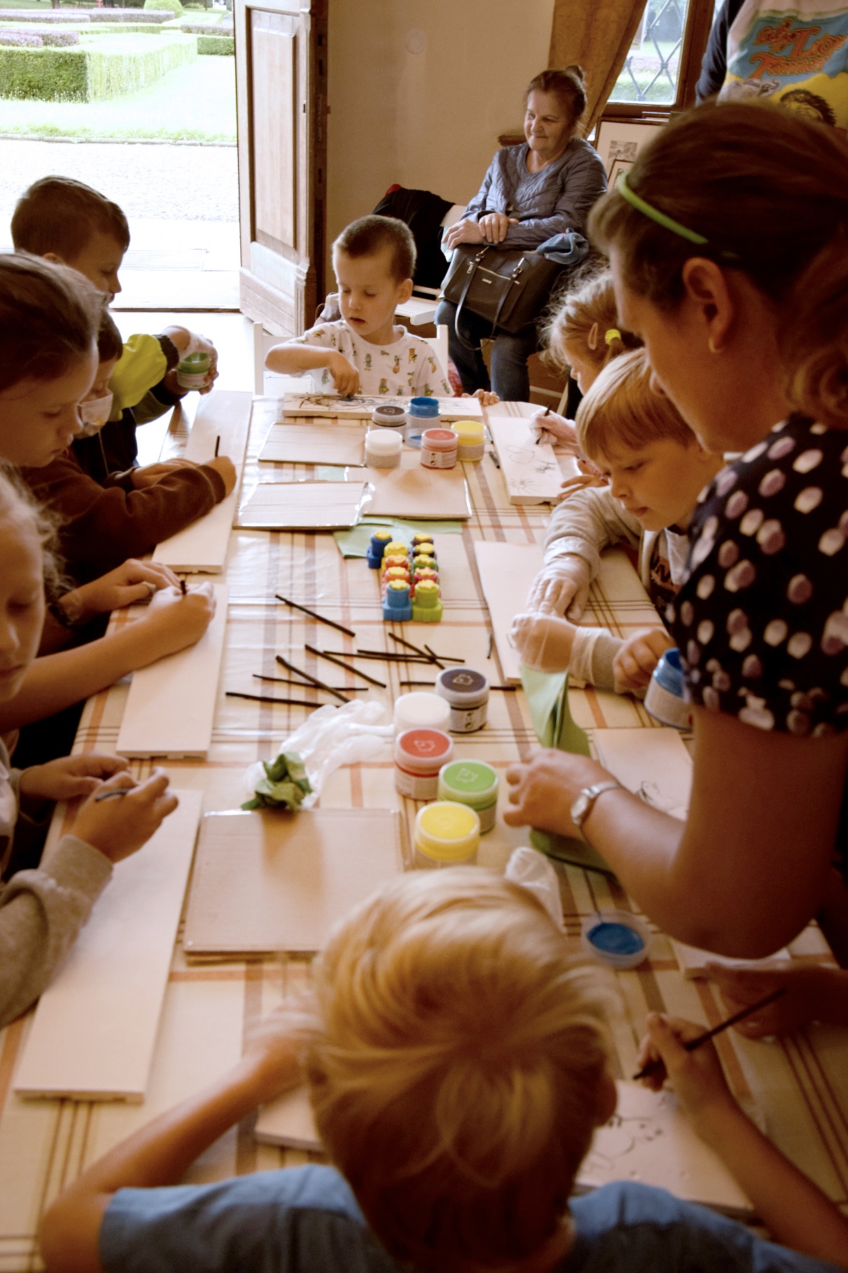 W drugiej części spotkania dzieci przeniosły się w odległą przeszłość końca epoki lodowcowej. Kilkanaście tysięcy lat przed jej zakończeniem prehistoryczni myśliwi pokrywali ściany jaskiń wielobarwnymi wizerunkami występujących wówczas zwierząt. Zapewne wszyscy słyszeli o malowidłach z hiszpańskiej Altamiry (odkrytych już w XIX wieku) czy francuskiego Lascaux lecz także np. w górach Kaukazu powstawały podobne dzieła sztuki naskalnej. Uczestnicy zajęć zostali wprowadzeni w temat poprzez prezentację multimedialną, traktującą nie tylko o paleolitycznej sztuce lecz także o tajnikach magii łowieckiej, po czym przystąpili do zajęć praktycznych. Polegały one na samodzielnym wykonaniu pracy na dowolnie wybrany temat przy pomocy węgla drzewnego, specjalnie dostosowanych farb i własnych dziesięciu palców. Malowano, oczywiście, na kamieniu, z tym, że na kamieniu sztucznym (gipsowym), bo każdy chciał zabrać swoje dzieło do domu a płyt z naturalnego surowca mogłyby dzieci nie udźwignąć.