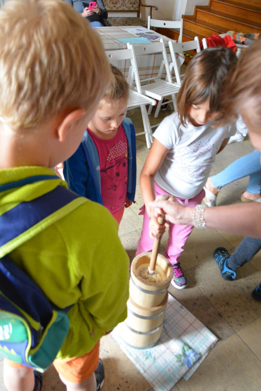 Badania w muzeach potwierdzają, że poprzez bezpośredni kontakt z eksponatem, wielozmysłowe poznanie, bezpośrednie przeżycie, a także przez aktywną postawę lepiej zapamiętujemy i rozumiemy to, co wydarzyło się w przeszłości, stajemy się aktywnymi odbiorcami kultury i jej współkreatorami. Okazuje się, że uczestnicy naszych dzisiejszych zajęć również bardzo cenią sobie obecność rzeczywistych, autentycznych przedmiotów z epoki - prawdziwych sprzętów, mebli, strojów ludowych czy chociażby … wysłużonej maselnicy.