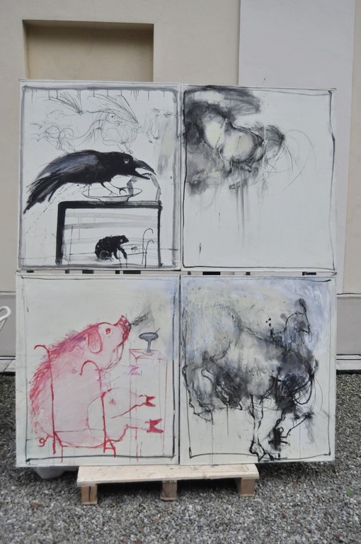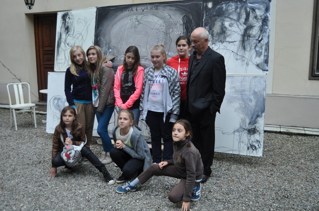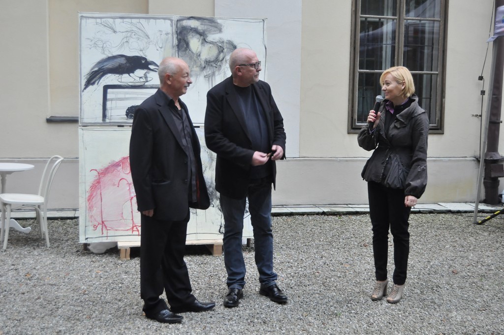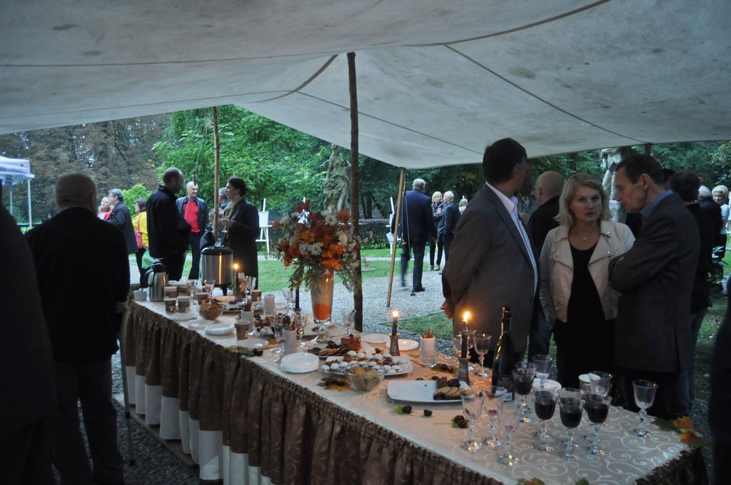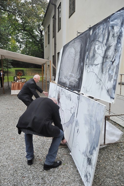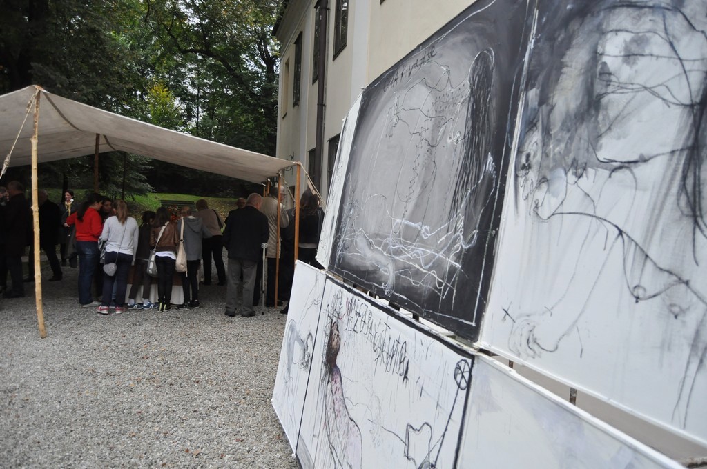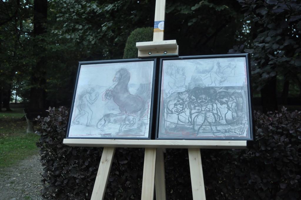 Druga część wernisażu odbyła się w parku, w sprzyjającej mu scenerii przy kolumnach Bachusa i Bachantki, gdzie oprócz wyeksponowania prac twórców na sztalugach można było zobaczyć prezentację głównego obrazu zakończonego podpisem twórców.