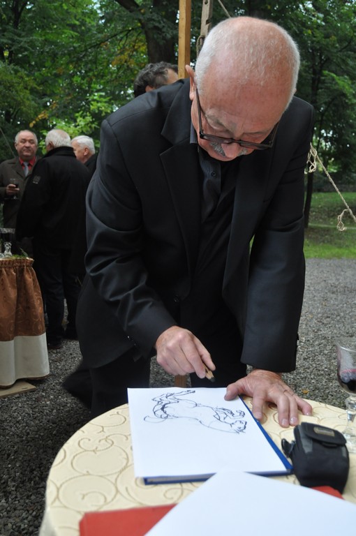 W trakcie wystawy dla zainteresowanych gości profesor Henryk Cześnik na pamiątkę, wykonywał małe podarunki w formie rysunku.