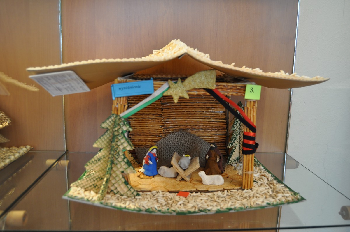 Na wystawie pokonkursowej prezentujemy 31 szopek, które zostały nagrodzone bądź wyróżnione przez jury w składzie: Przewodnicząca: Grażyna Cuber, Roman Goczoł z Wydziału Oświaty UM, ks. Dziekan Andrzej Stępień, Aleksandra Lipa z Wydziału Promocji, Kultury, Sportu i Komunikacji Społecznej i Anna Góra – etnograf z Muzeum Zagłębia w Będzinie. Wszystkie prezentowane prace świadczą o wielkiej pomysłowości, zaangażowaniu i wyobraźni małych artystów. Czas spędzony nad ich wykonaniem na pewno sprawił dzieciom wiele radości. Powstały szopki z piernika, makaronu, wafli, muszelek, drewniane, złote, koronkowe i wiele, wiele innych bardzo pomysłowych, a nawet zaskakujących prac. Jury miało naprawdę trudne zadanie przy wyporze najpiękniejszej szopki bożonarodzeniowej.