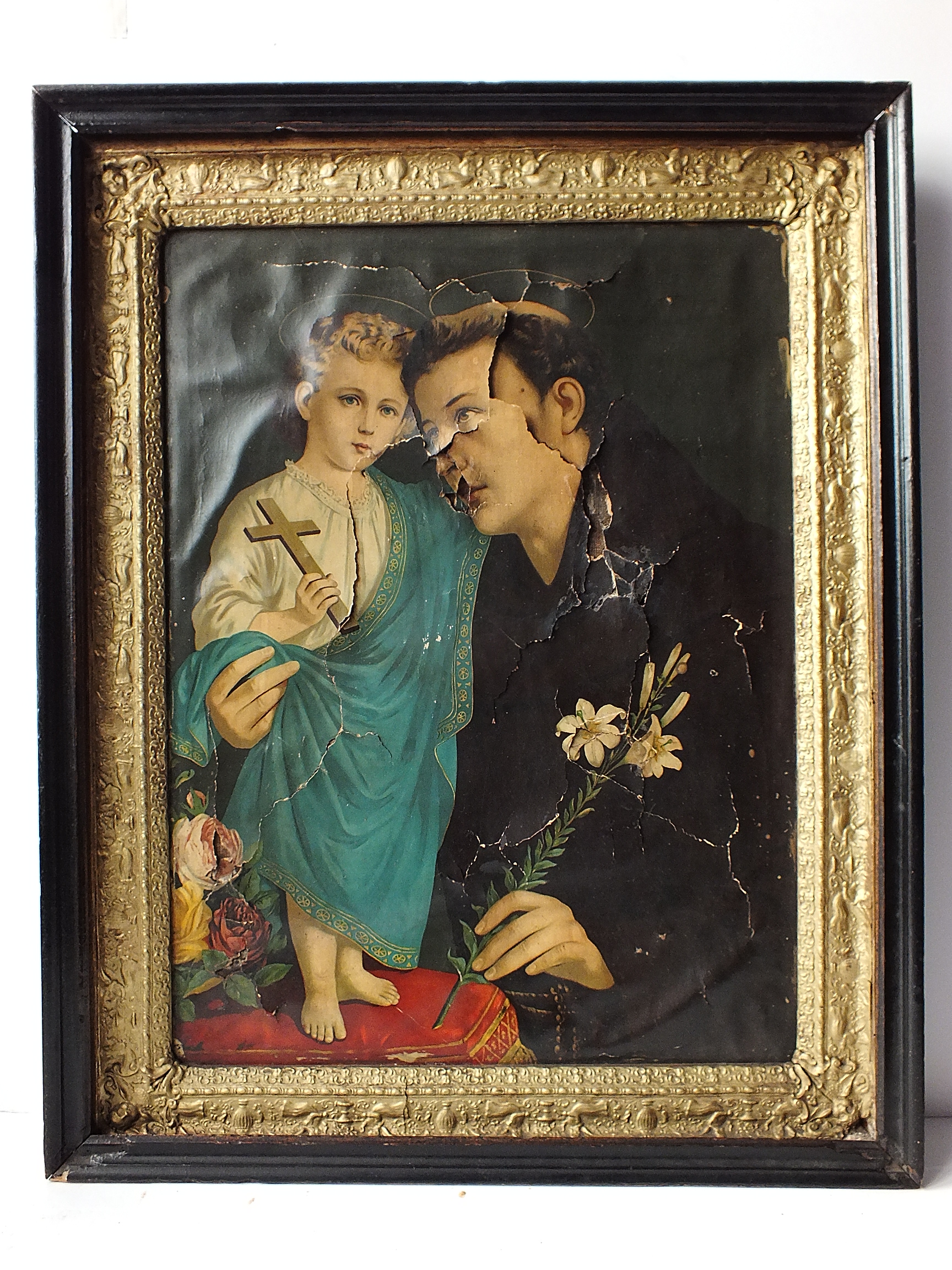 Oleodruk znajdujący się w zbiorach Działu Etnografii przedstawia postać św. Antoniego i małego Jezusa. Oleodruki to reprodukcje wykonane techniką wielobarwnego druku na papierze. Przedstawiały one często w sposób naiwny i mało wyrafinowany różne wydarzenia i sceny biblijne a także wizerunki Świętych. Oleodruki były popularne w XIX wieku i w pierwszej połowie XX wieku. Produkowano je wówczas masowo a ich wartość artystyczna była niewielka.