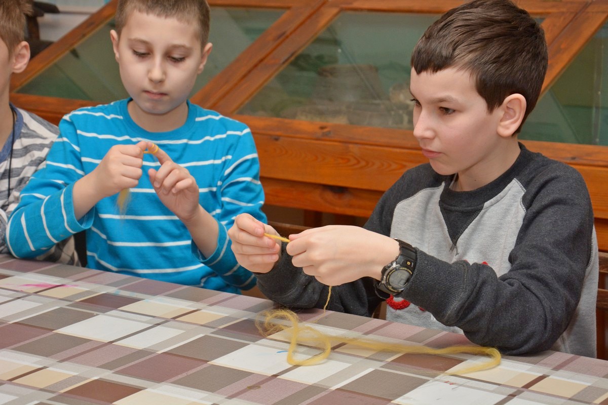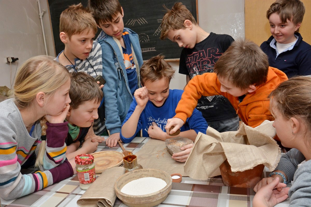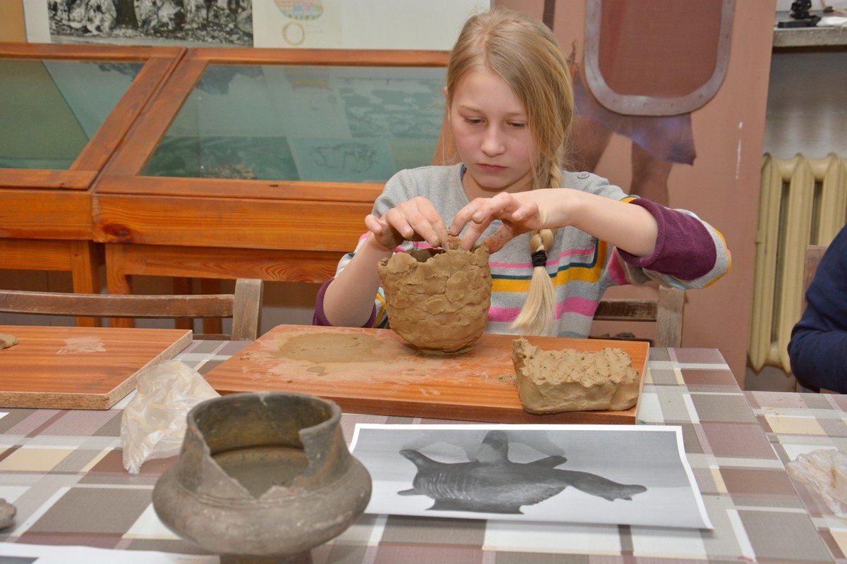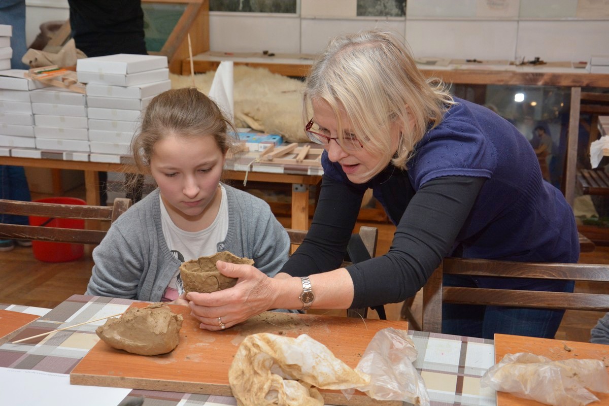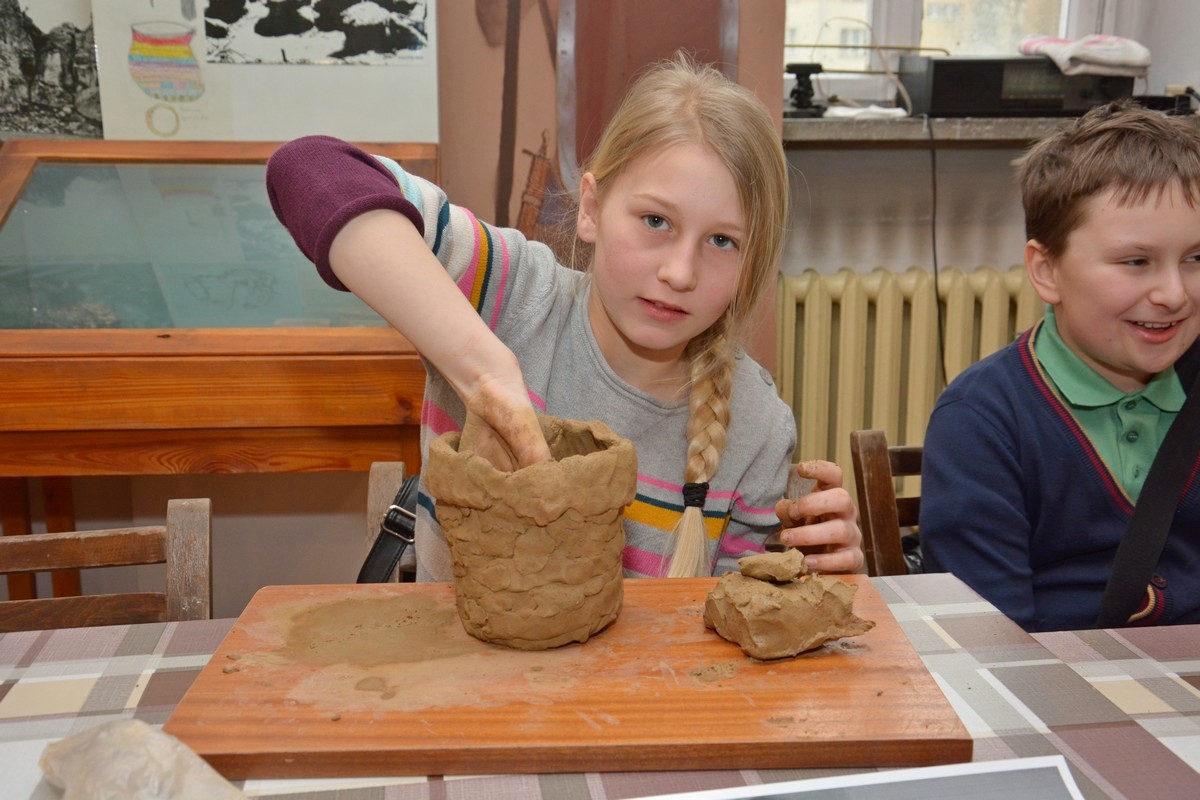 W trakcie trwania pierwszego, które odbyło się tydzień wcześniej, dzieci otrzymały solidne podstawy teoretyczne poruszanego tematu podczas prezentacji multimedialnej i wizyty na wystawie archeologicznej. Obecnie, na zajęciach warsztatowych, zmierzyły się z wyzwaniem pod postacią poradzenia sobie z czynnościami niezbędnymi w życiu codziennym w tej odległej epoce. Próbowały własnoręcznie lepić garnki z gliny, zdobić je  „łużyckimi” motywami, rozetrzeć  ziarna zboża na ręcznych żarnach, zagnieść ciasto chlebowe na podpłomyki i upiec na rozgrzanych kamieniach, czy wysnuć nić z czesanej wełny owczej i nawinąć ją na wrzeciono. W programie jest jeszcze wytwarzanie biżuterii na wzór ozdób z końca epoki brązu i wycieczka z archeologiem w miejsce bardzo szczególne -  na Górę św. Doroty, gdzie w okresie halsztackim funkcjonowało jedyne na naszych terenach grodzisko obronne ludności  kultury łużyckiej.
