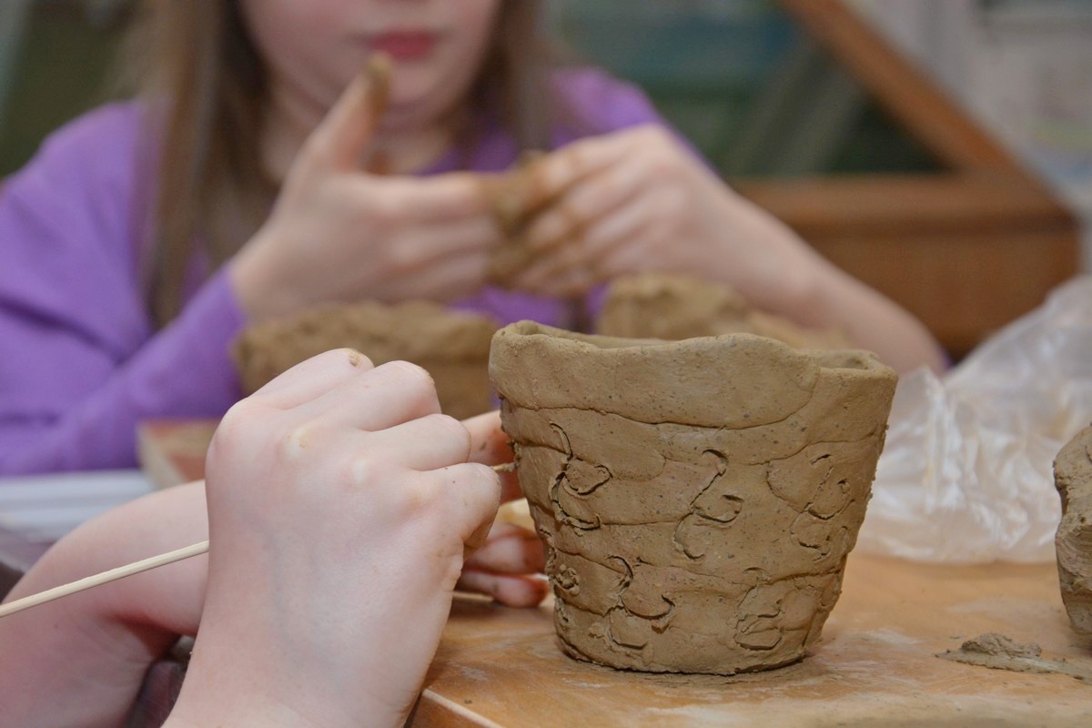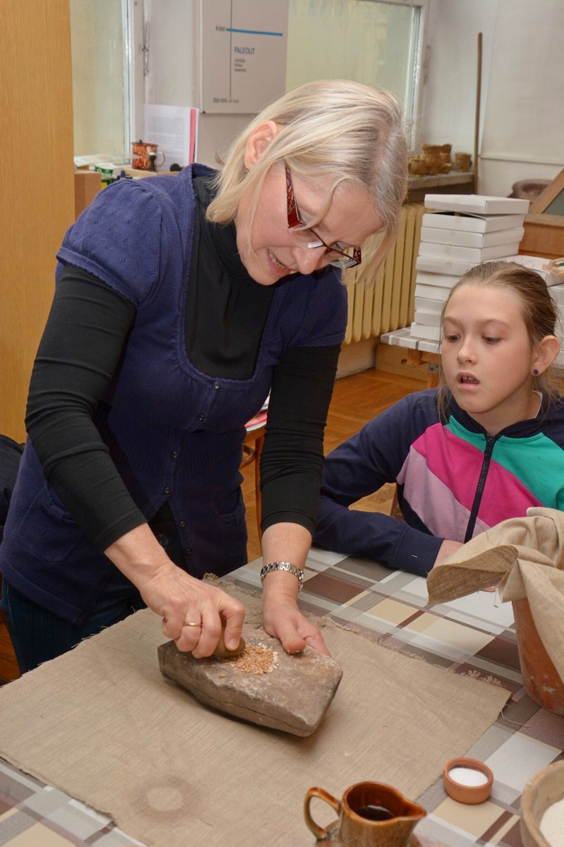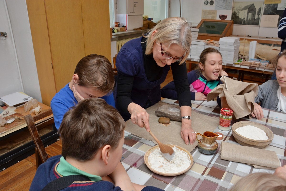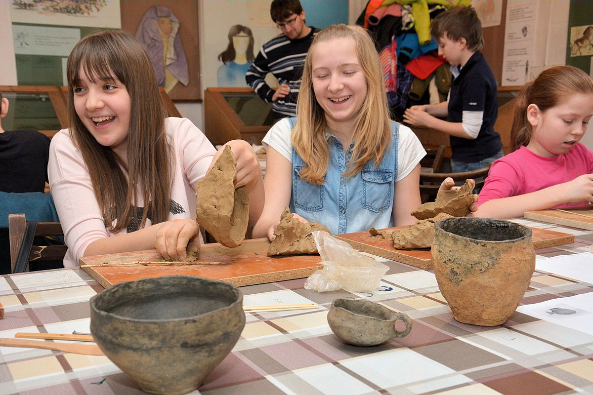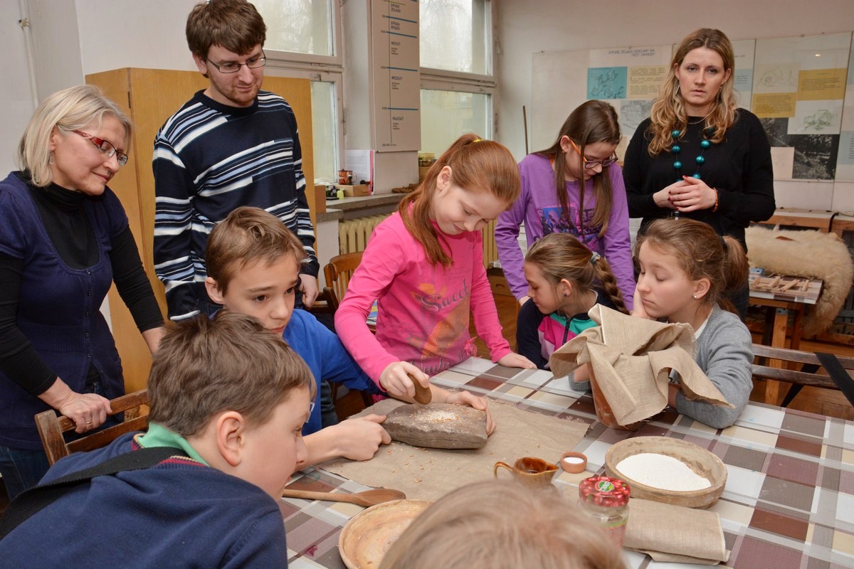 W trakcie trwania pierwszego, które odbyło się tydzień wcześniej, dzieci otrzymały solidne podstawy teoretyczne poruszanego tematu podczas prezentacji multimedialnej i wizyty na wystawie archeologicznej. Obecnie, na zajęciach warsztatowych, zmierzyły się z wyzwaniem pod postacią poradzenia sobie z czynnościami niezbędnymi w życiu codziennym w tej odległej epoce. Próbowały własnoręcznie lepić garnki z gliny, zdobić je  „łużyckimi” motywami, rozetrzeć  ziarna zboża na ręcznych żarnach, zagnieść ciasto chlebowe na podpłomyki i upiec na rozgrzanych kamieniach, czy wysnuć nić z czesanej wełny owczej i nawinąć ją na wrzeciono. W programie jest jeszcze wytwarzanie biżuterii na wzór ozdób z końca epoki brązu i wycieczka z archeologiem w miejsce bardzo szczególne -  na Górę św. Doroty, gdzie w okresie halsztackim funkcjonowało jedyne na naszych terenach grodzisko obronne ludności  kultury łużyckiej.
