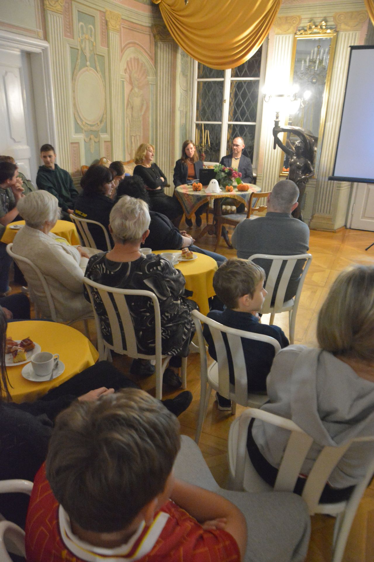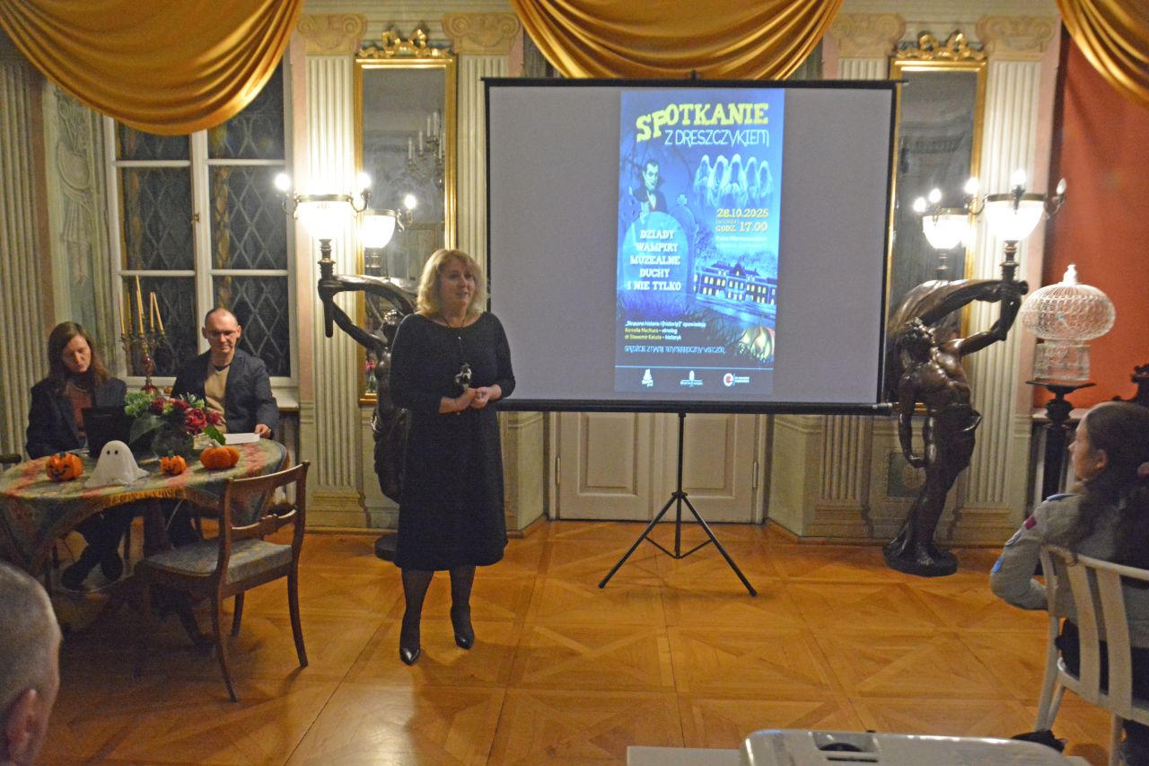 Mimo kapryśnej pogody, Pałac Mieroszewskich wypełnił się miłośnikami historii z dreszczykiem! Razem z etnolog Kornelią Machurą i historykiem dr. Sławkiem Kałużą przenieśliśmy się w świat dawnych obrzędów, duchów, wampirów i będzińskich legend.