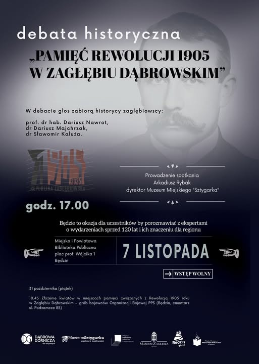 W programie m.in. przypomnienie epizodu Republiki Zagłębiowskiej – jednego z najważniejszych, choć wciąż mało znanych momentów w historii naszego regionu. To tylko jeden z tematów szerszej dyskusji o dziedzictwie wydarzeń 1905 roku i ich znaczeniu dla tożsamości Zagłębia Dąbrowskiego.