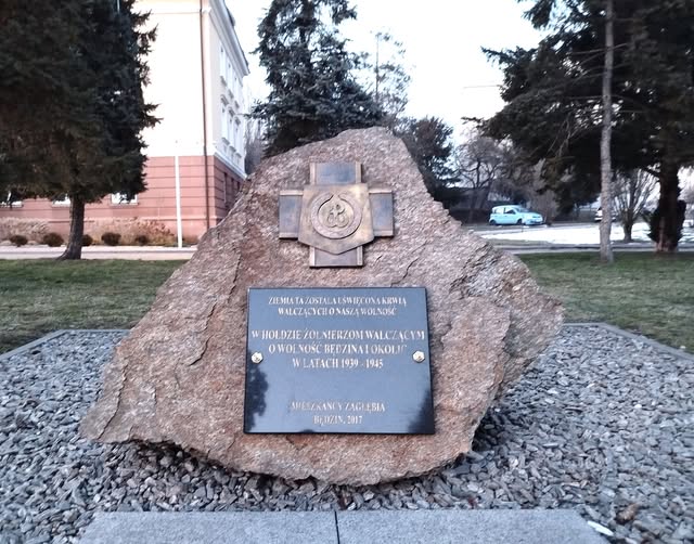Ilustracja: Głaz upamiętniający żołnierzy walczących o wolność Będzina i okolic w latach 1939-1945. Plac Kardynała Lustigera w Będzinie.