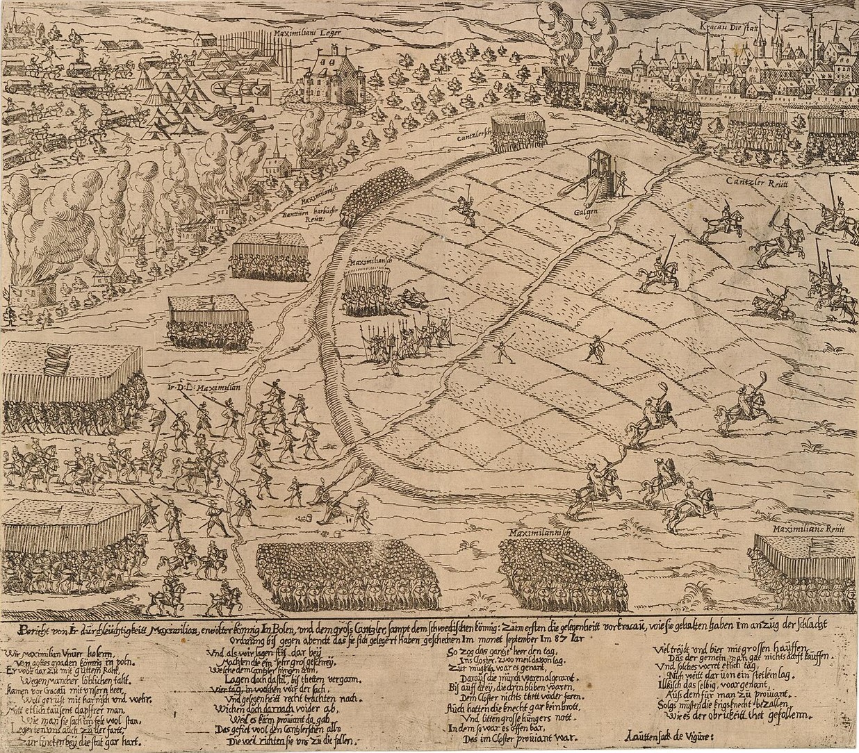 Ilustracja: Adolf Lautensack, Oblężenie Krakowa przez wojska Maksymiliana Habsburga, akwaforta, ok. 1587 r. Zbiory British Museum w Londynie (licencja CC BY-SA 4.0).