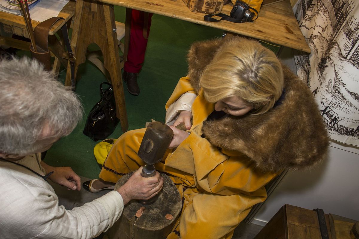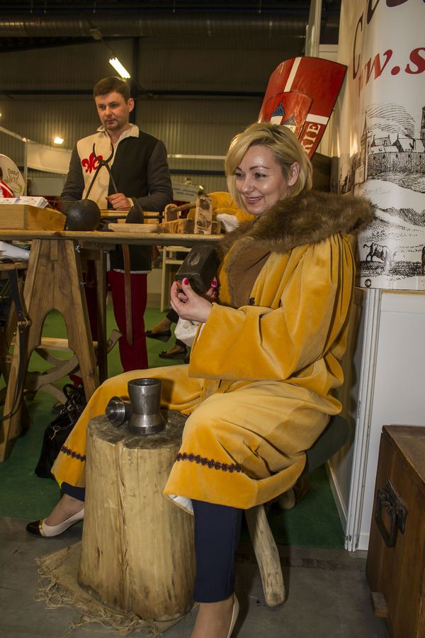 Na targach, branżę turystyczną reprezentowało ponad 260 firm, jedna z nich szczególnie nas zainteresowała. Na stoisku promocyjnym miasta Strzelce Krajeńskie zainteresował nas warsztat menniczy, a w nim narzędzia do wytwarzania monet. Mincerz w stylizowanym stroju wybijał okolicznościowe monety.