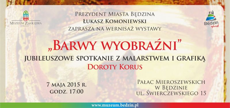Muzeum Zagłębia w Będzinie zaprasza na jubileuszowe spotkanie z malarstwem i grafiką Doroty Korus - „Barwy wyobrazi”.