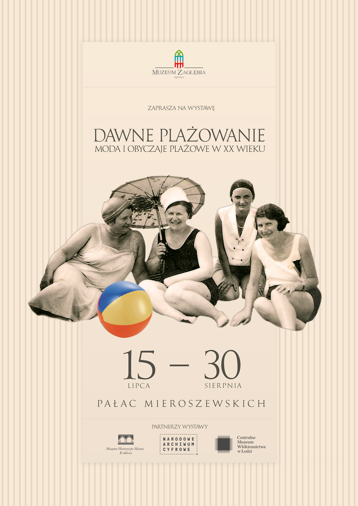 Owe zmiany w modzie plażowej w XX wieku prezentuje wystawa „Dawne plażowanie – moda i obyczaje plażowe w XX wieku”, którą można zobaczyć już od 15 lipca w Pałacu Mieroszewskich w Będzinie (obiekt Muzeum Zagłębia). Wystawa powstała w oparciu o zbiory Centralnego Muzeum Włókiennictwa w Łodzi, Muzeum Historycznego Miasta Krakowa oraz Narodowego Archiwum Cyfrowego. Założeniem ekspozycji jest prezentacja zmian jakie zachodziły w obyczajach związanych z wypoczynkiem nad polskim morzem w XX wieku. Na wystawie wyeksponowano stroje kąpielowe oraz plażowe z lat 30-80 XX wieku, akcesoria plażowe a także reprodukcje fotografii, kart pocztowych, reklam i artykułów prezentujących modę plażową lat 20’tych.