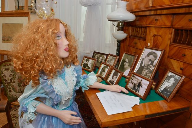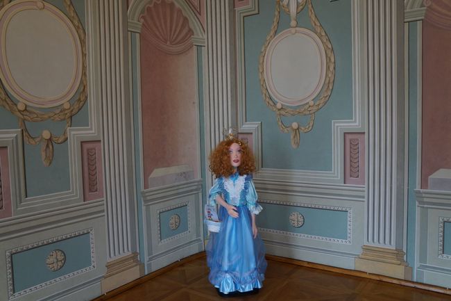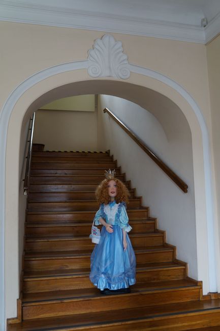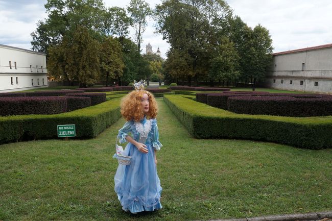 Z teatru wydelegowano tym razem „Księżniczkę Lolitę”. Rudowłosa piękność, w wytwornej błękitnej sukni od razu dostała u nas nowe imię. W czasie pobytu w naszym Muzeum będziemy nazywać ją Błękitna Ludwiką - tak jak ducha z pałacowej legendy. Ludwika, wnuczka Kazimierza Mieroszewskiego - budowniczego będzińskiego pałacu, w wieczór swych zaręczyn wystąpiła podobno w przepięknej błękitnej sukni, sprowadzonej specjalnie z Warszawy. Tak więc zamiłowanie do koloru błękitnego spowodowało, że „Lolita” dostała u nas nowe imię.