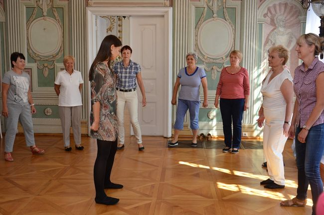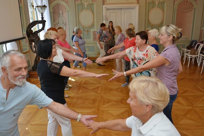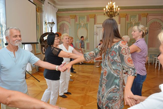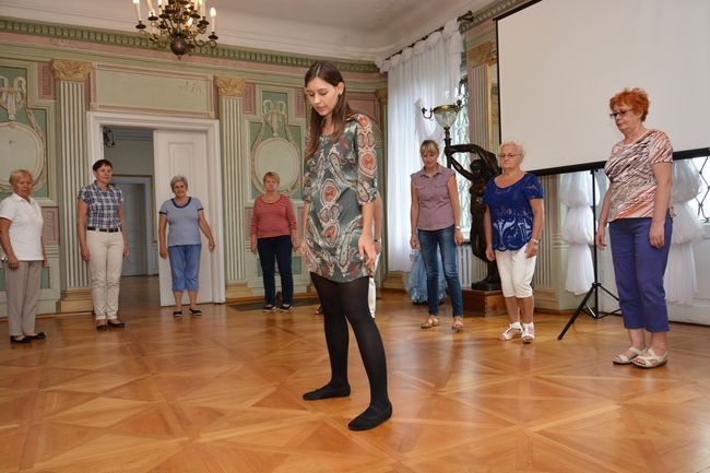 W Pałacu Mieroszewskich w poniedziałek 14.09. br. odbyły się zajęcia dla słuchaczy Uniwersytetu Trzeciego Wieku pt. „Dawny taniec”.