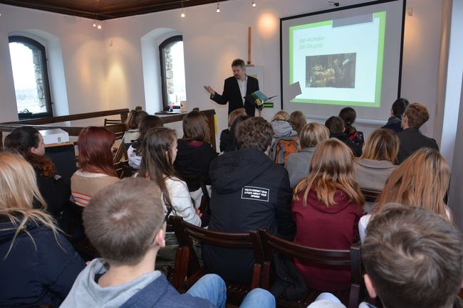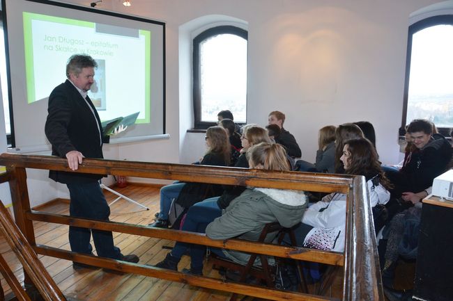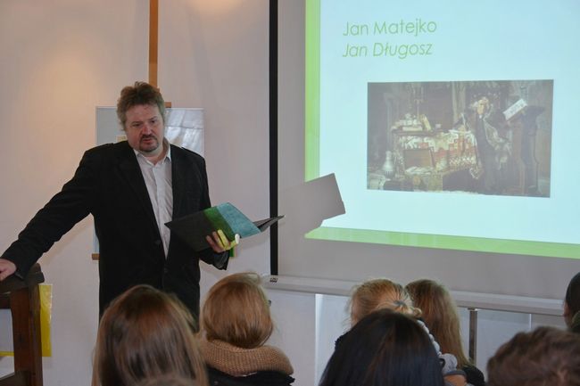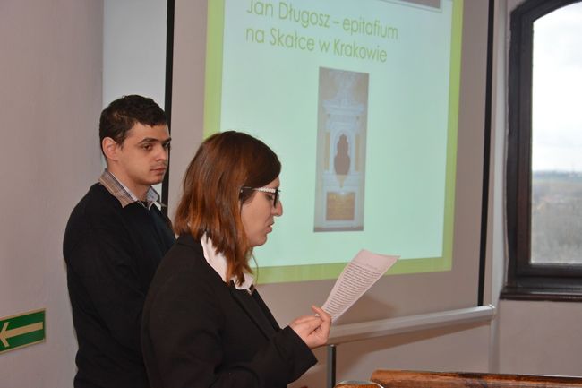 Prelekcja podzielona była na dwie części. W pierwszej uczniowie zapoznali się z najwybitniejszymi dziełami Długosza, jego biogramem, a także z ciekawostkami z jego życia.
