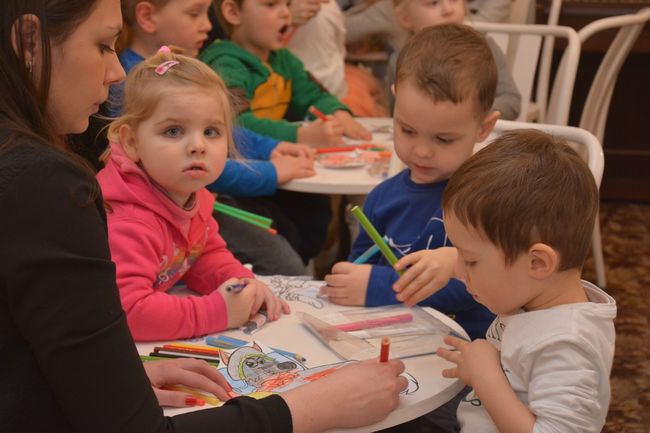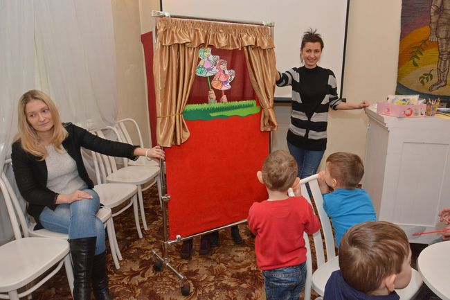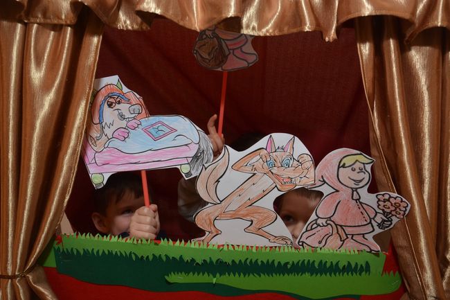W zajęciach wzięły udział dzieci z przedszkola Dobry Start z Będzina. Spotkanie prócz tego, że obfitowało w wielobarwność motywów bajkowych, przysporzyło maluchom możliwości kreatywnej zabawy.  Przedszkolaki zafascynowane przygotowanym dla nich teatrzykiem z ochotą i radością podjęły się przygotowania przedstawienia historii Czerwonego Kapturka.  Aktorów było więcej niż widzów, co więcej, bajka o dziewczynce z czerwonym kapturkiem w interpretacji maluchów nabrała nowego, wyjątkowego wymiaru.