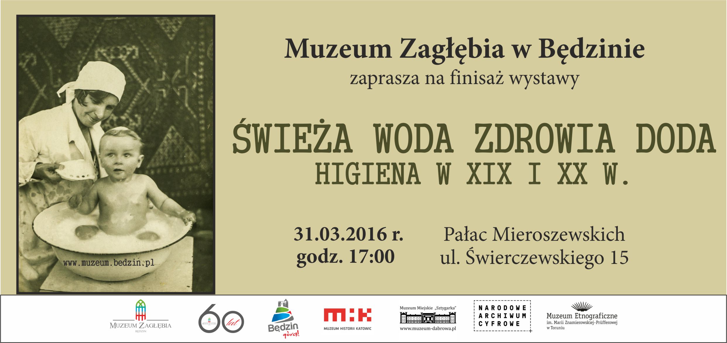 Muzeum Zagłębia w Będzinie zaprasza na finisaż wystawy „Świeża woda zdrowia doda – higiena w XIX i XX w.”, który odbędzie się 31.03.2016 r. w Pałacu Mieroszewskich o godzinie 17.00.