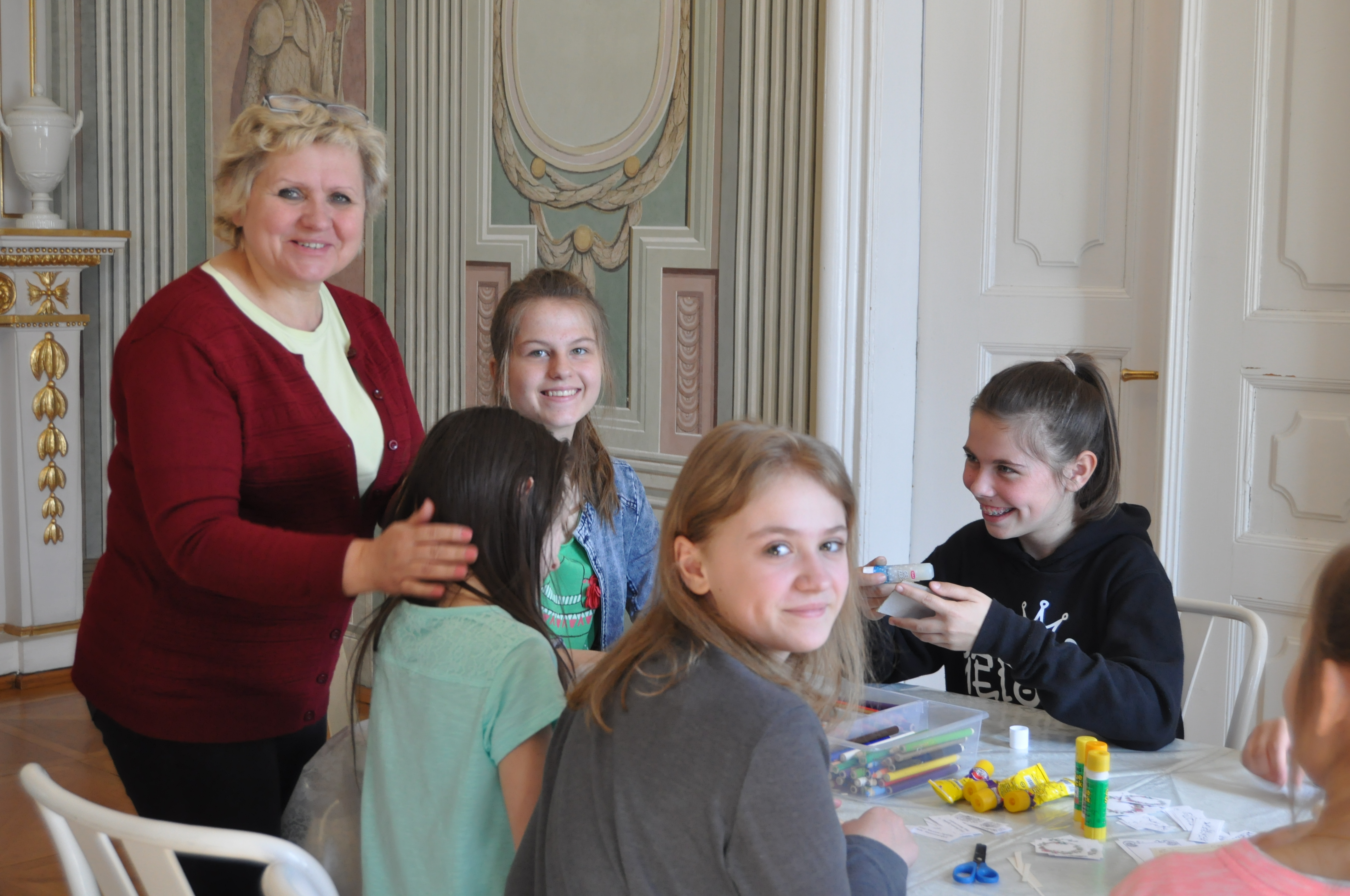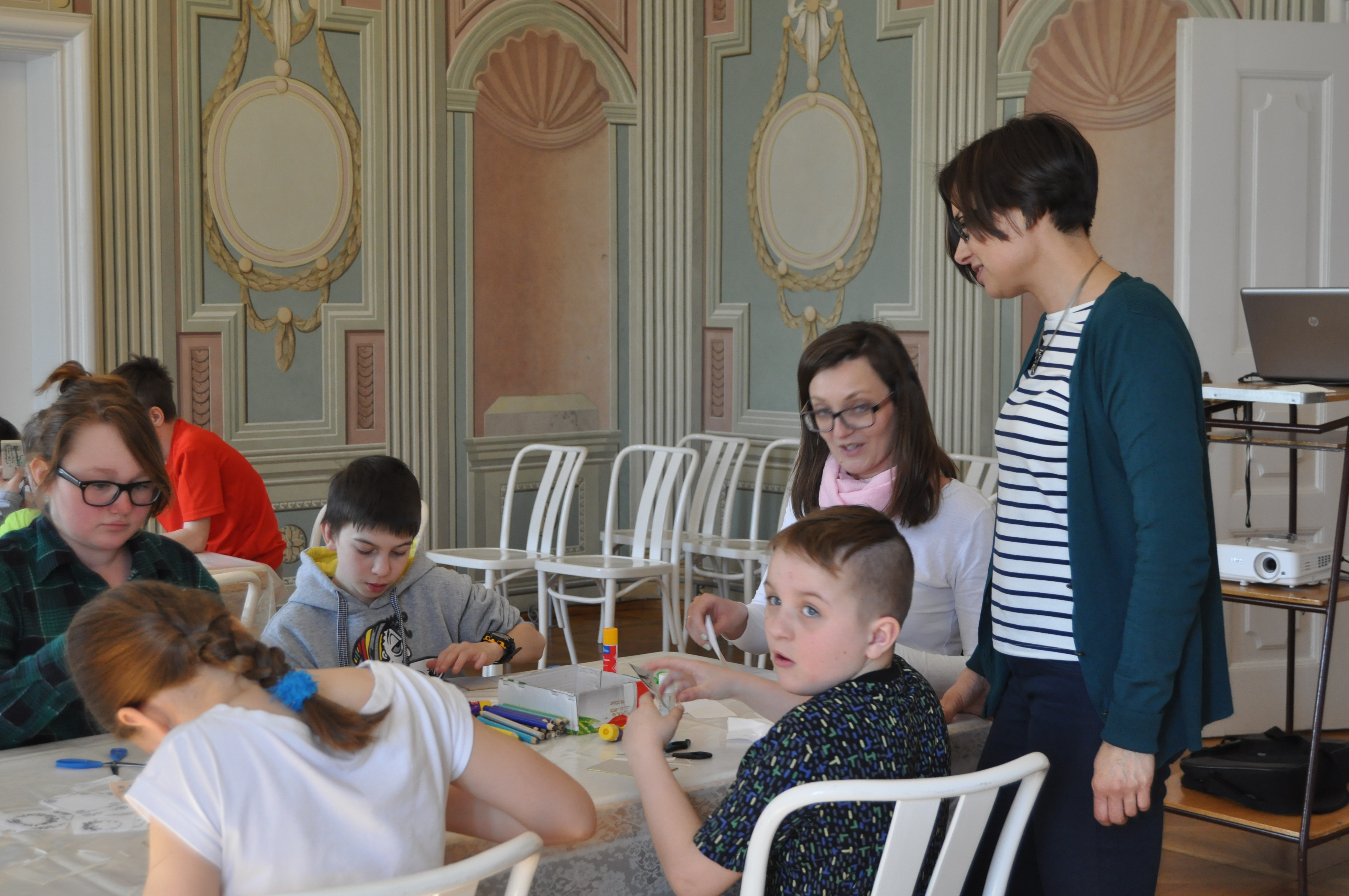 W części warsztatowej każdy uczestnik zajęć własnoręcznie stworzył oprawę własnego zdjęcia zrobionego mu w pałacu przez pracownika muzeum.