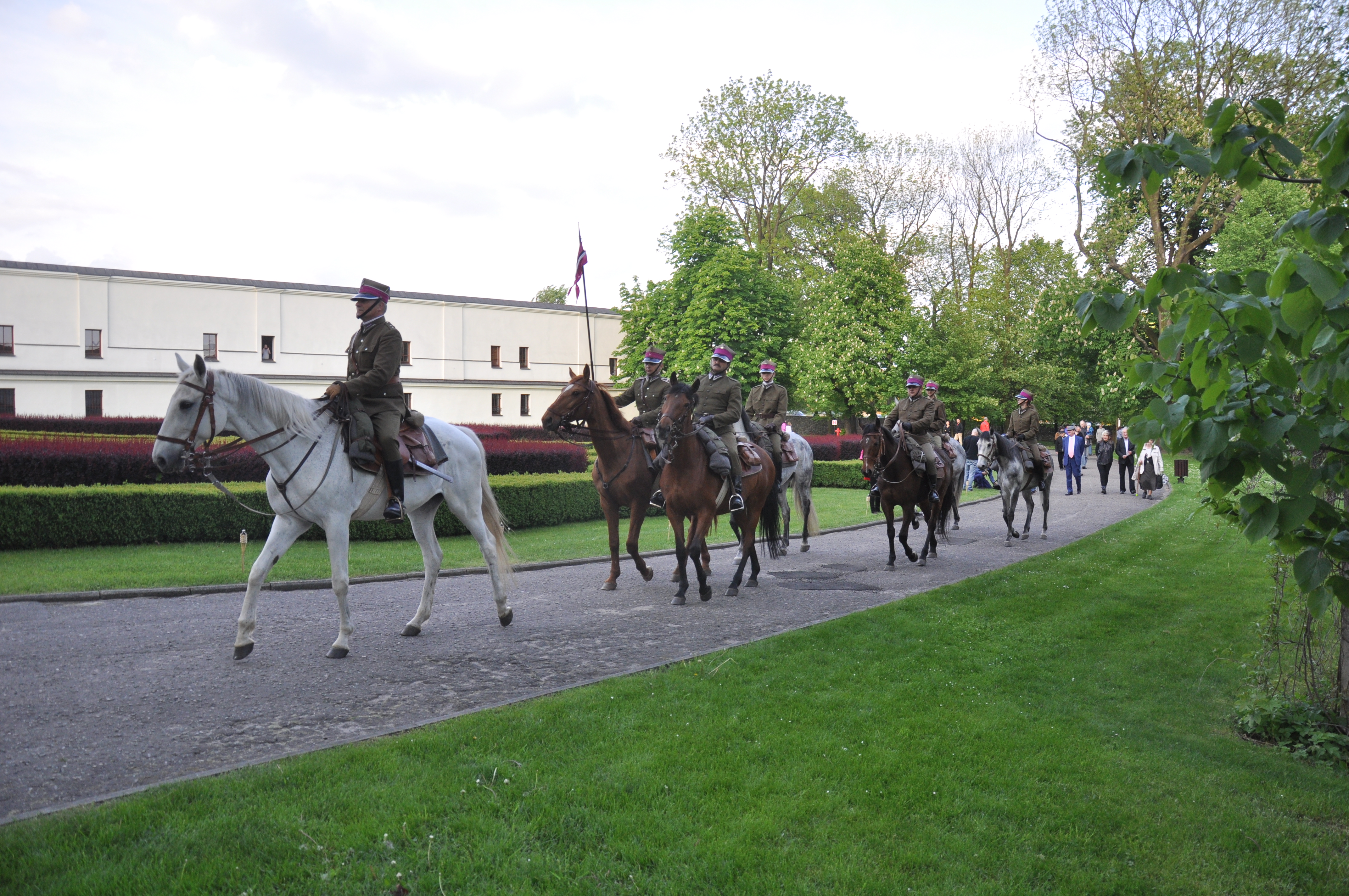 Organizatorzy serdecznie dziękują grupie rekonstrukcyjnej „Jurajski Szwadron Kawalerii im. króla Jana III Sobieskiego”, która swoim występem uświetniła Noc Muzeów przy Pałacu Mieroszewskich. Kawalerzyści o godzinie 18:00 wprowadzili gości muzealnych przez bramę główną, następnie dali pokaz fechtunku, a piękne amazonki poprowadziły konie do kadryla.