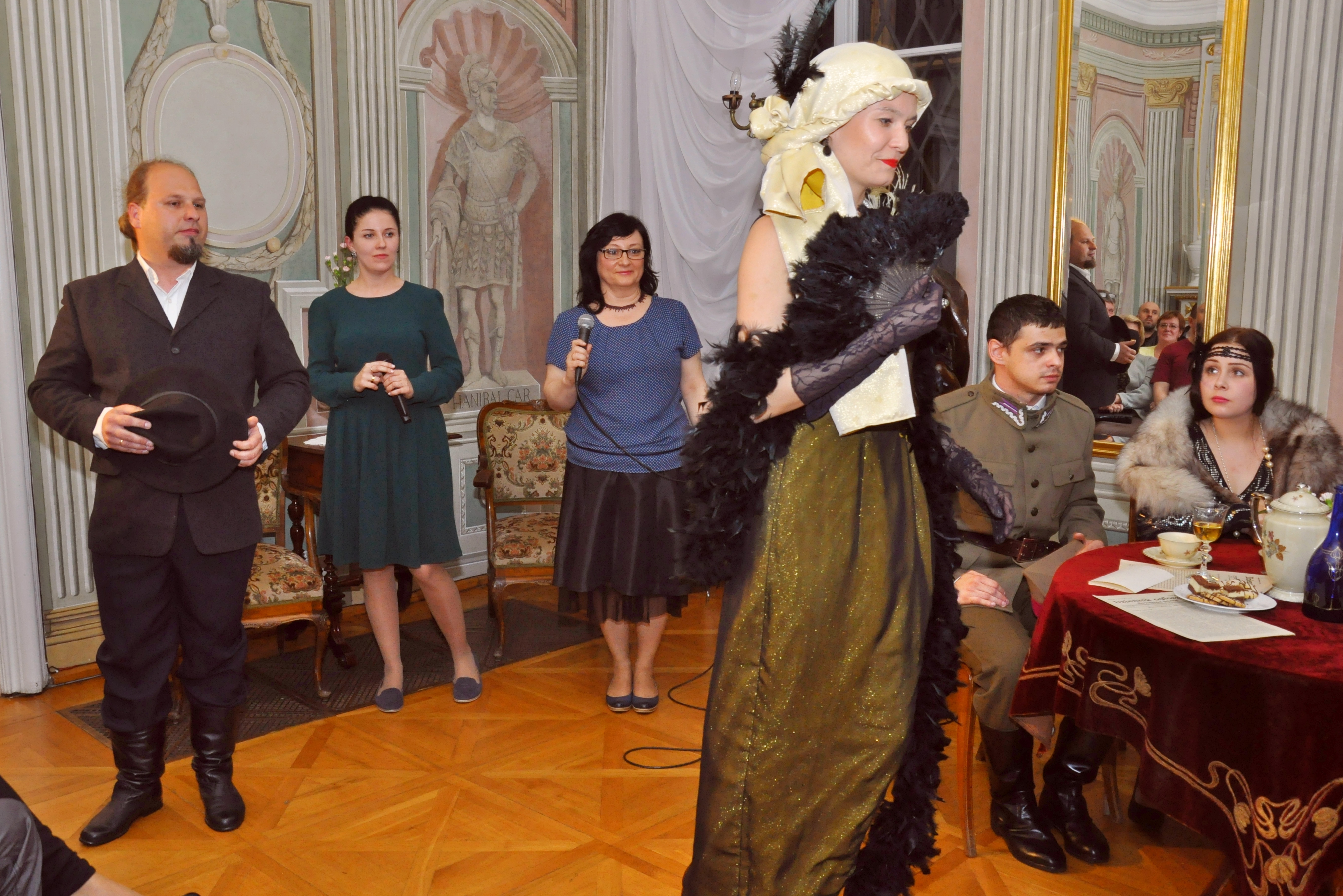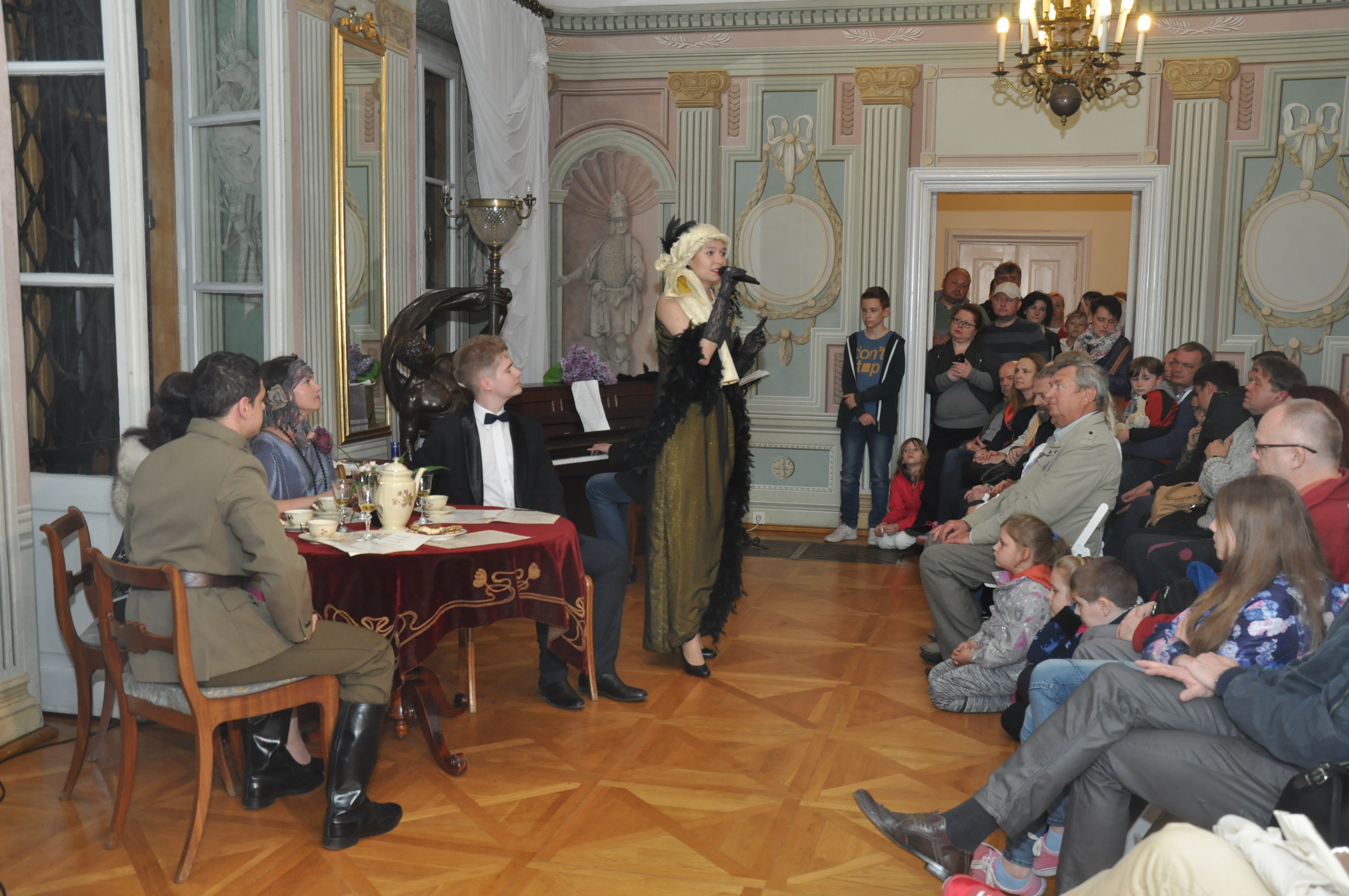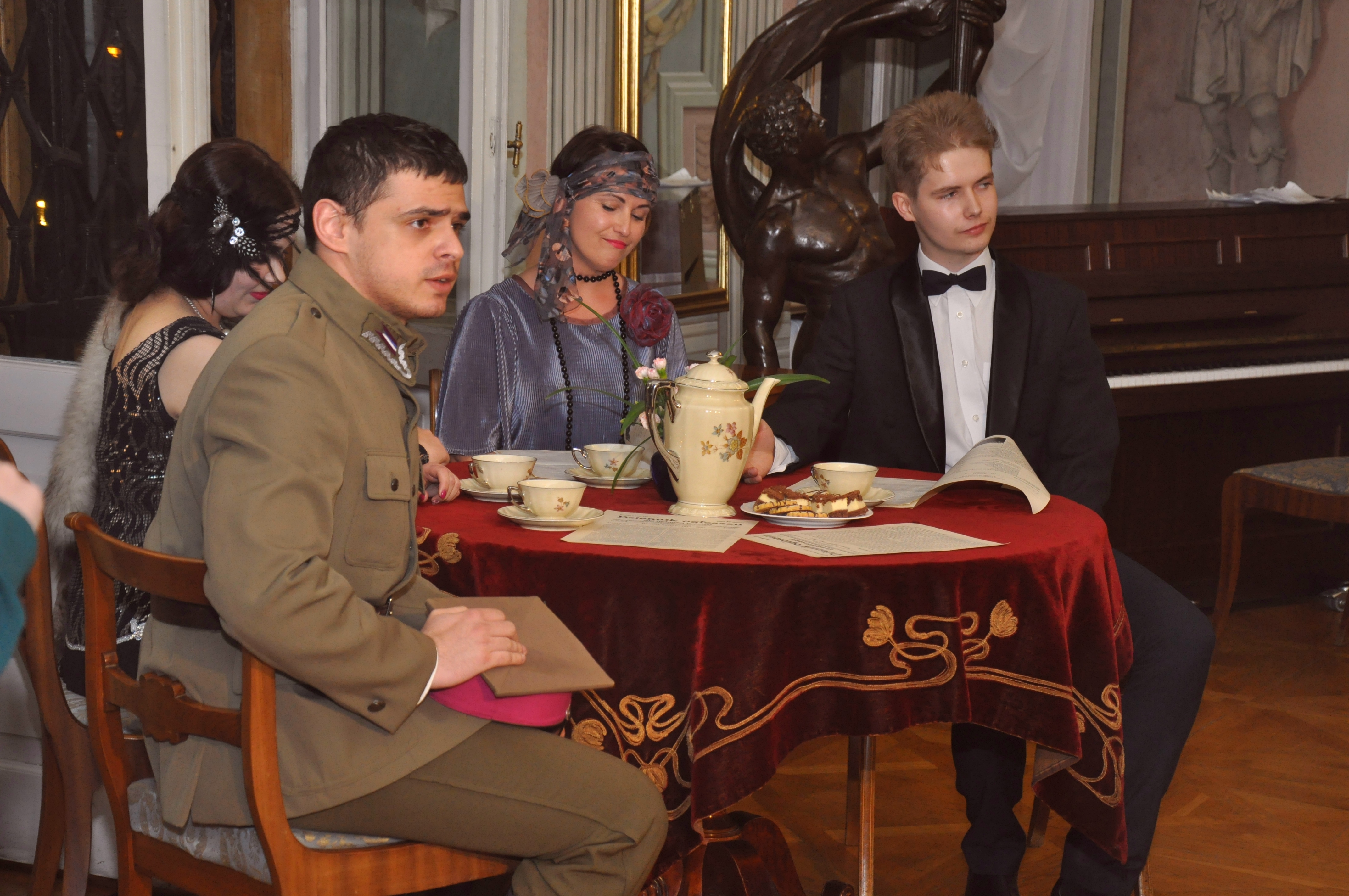 Autorki scenariusza przedstawienia serdecznie dziękują swoim koleżankom i kolegom, którzy wcielili się w bohaterów przyjęcia, grupie rekonstrukcyjnej, artystom, opiekunom ekspozycji w pałacu oraz wolontariuszom za wspaniałą współpracę. Dziękujemy naszej wiernej publiczności za tak liczne przybycie do Pałacu Mieroszewskich w Noc Muzeów 2016 r.