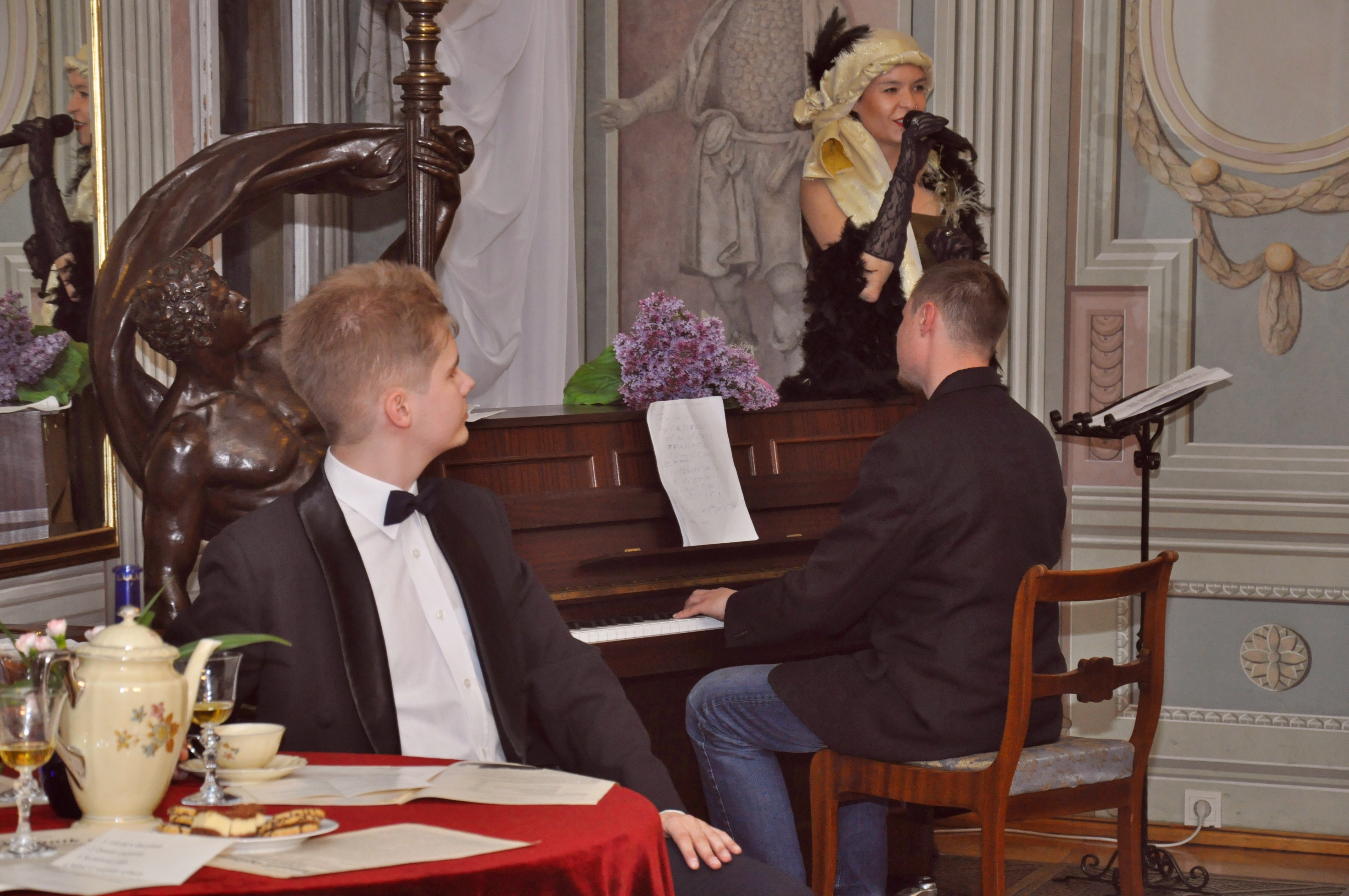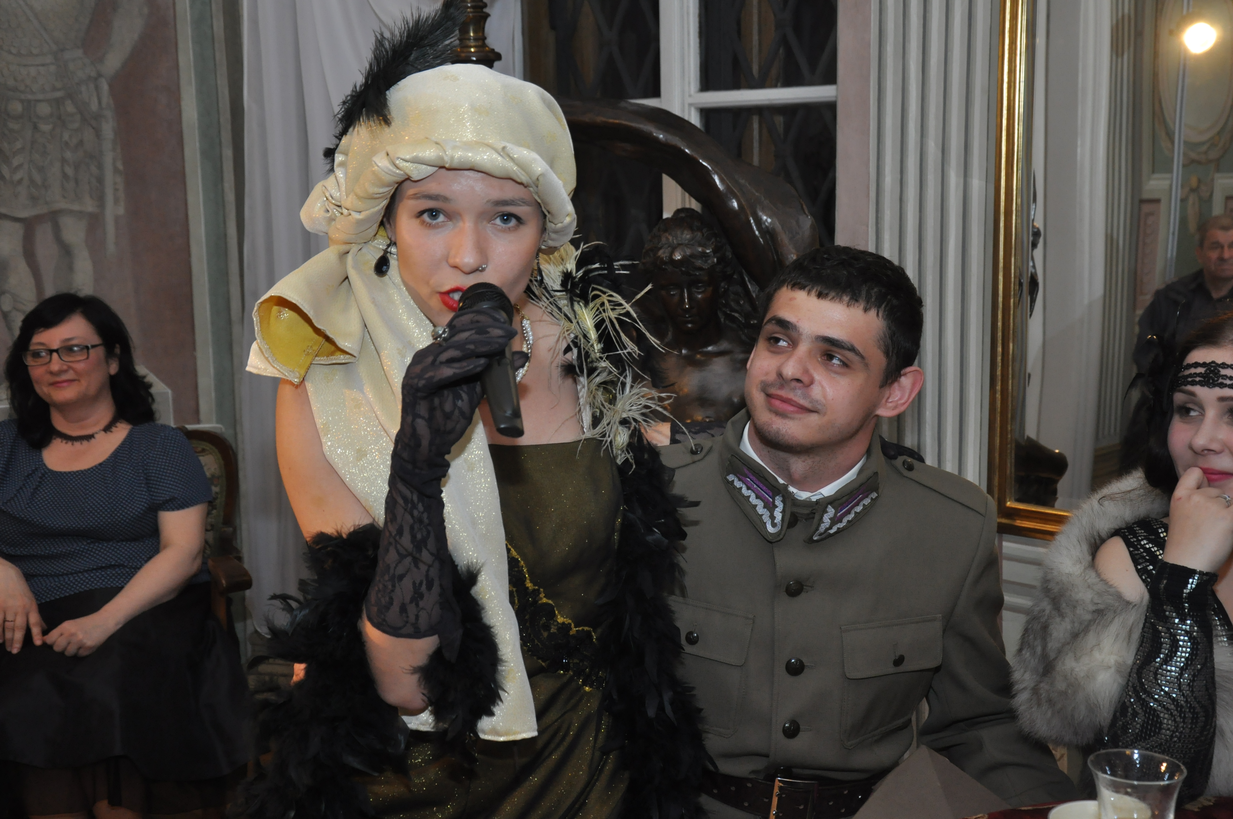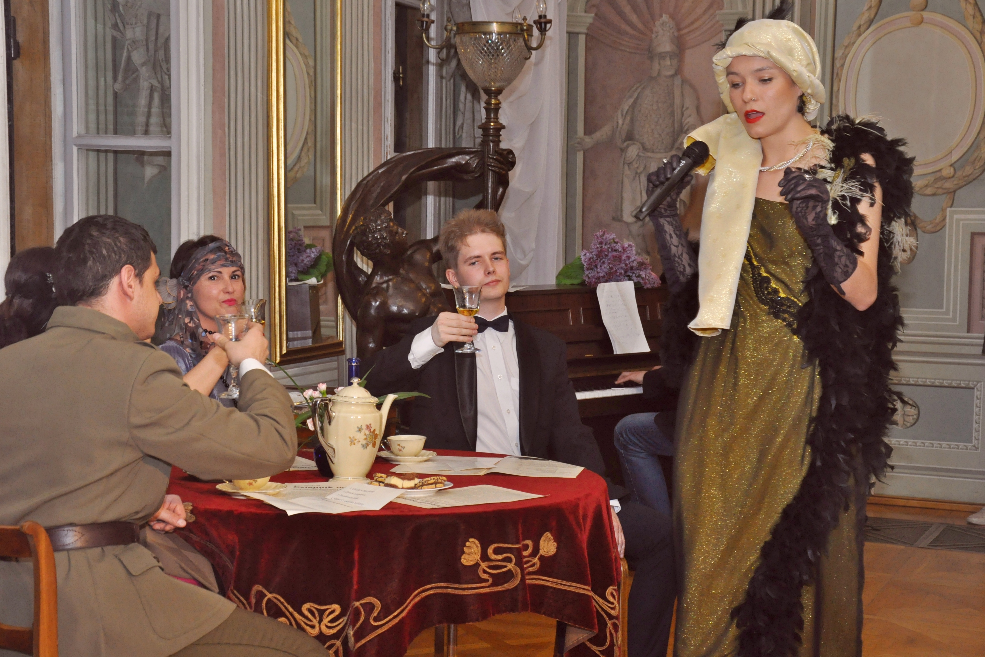 Autorki scenariusza przedstawienia serdecznie dziękują swoim koleżankom i kolegom, którzy wcielili się w bohaterów przyjęcia, grupie rekonstrukcyjnej, artystom, opiekunom ekspozycji w pałacu oraz wolontariuszom za wspaniałą współpracę. Dziękujemy naszej wiernej publiczności za tak liczne przybycie do Pałacu Mieroszewskich w Noc Muzeów 2016 r.