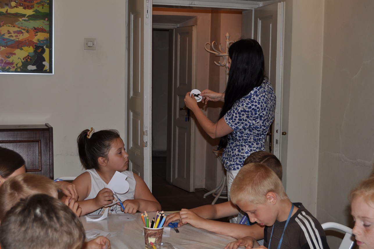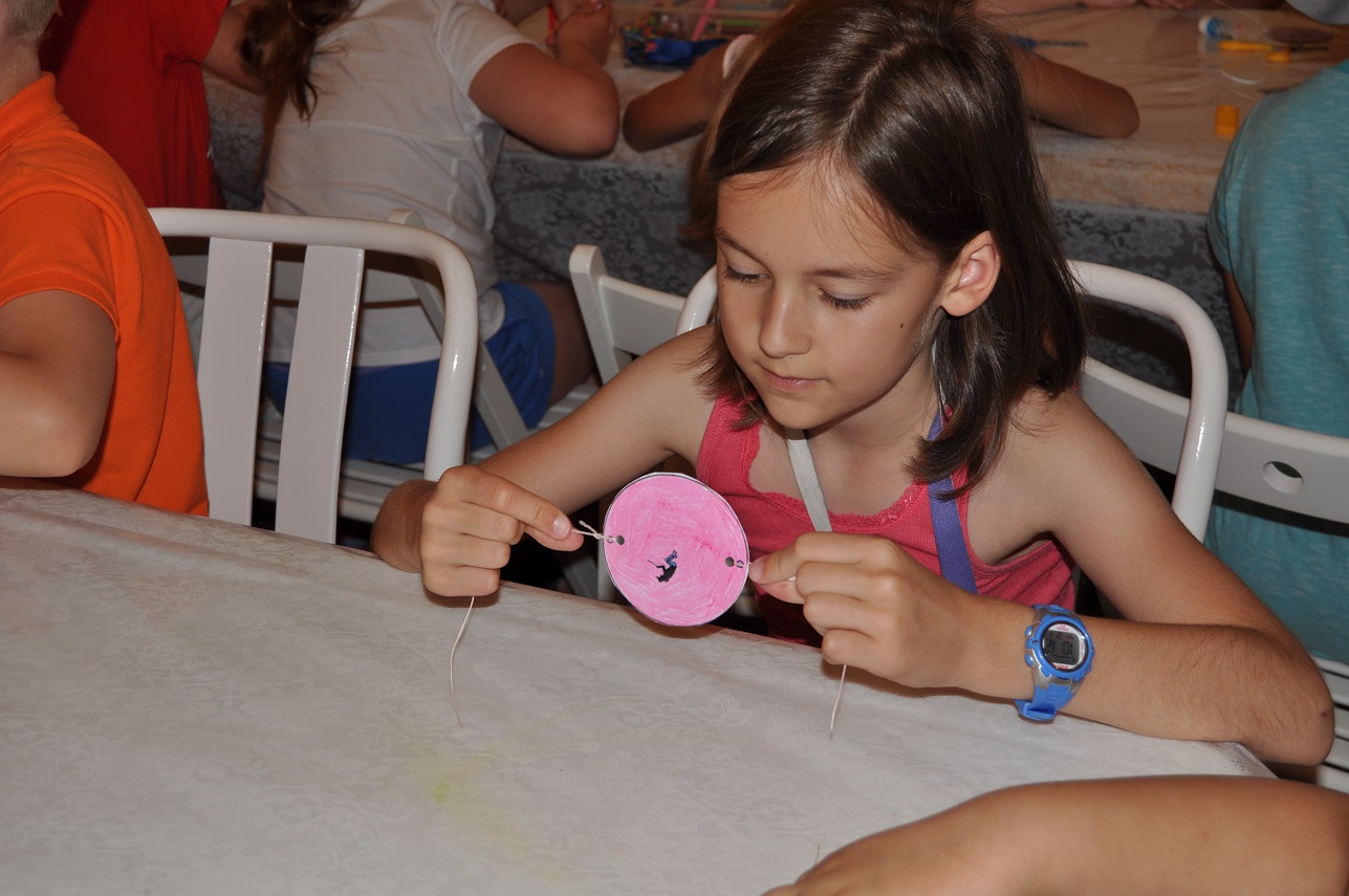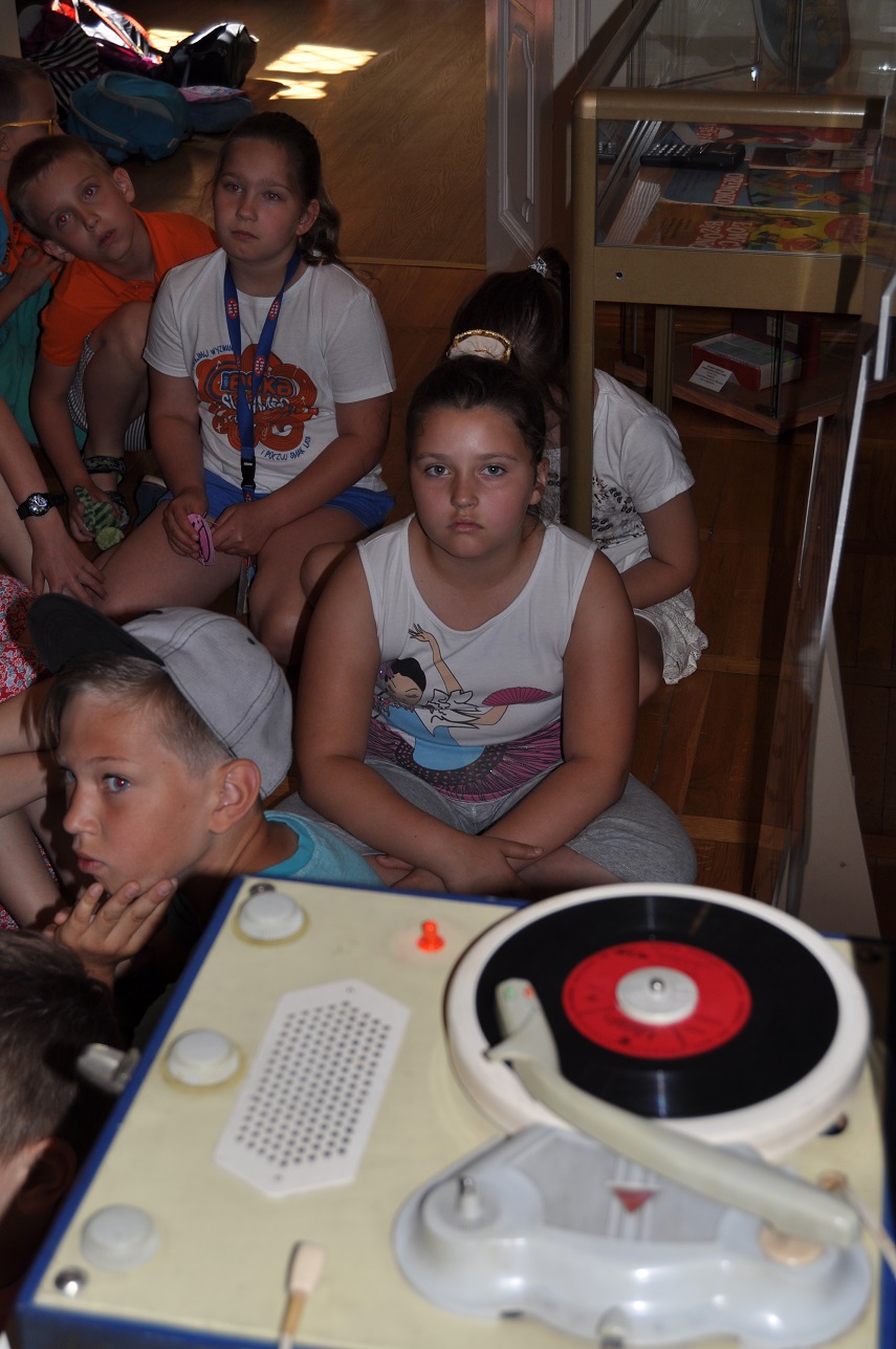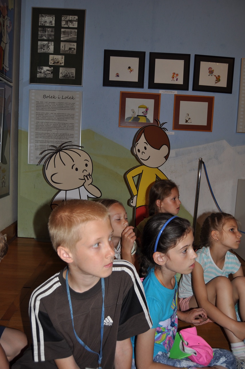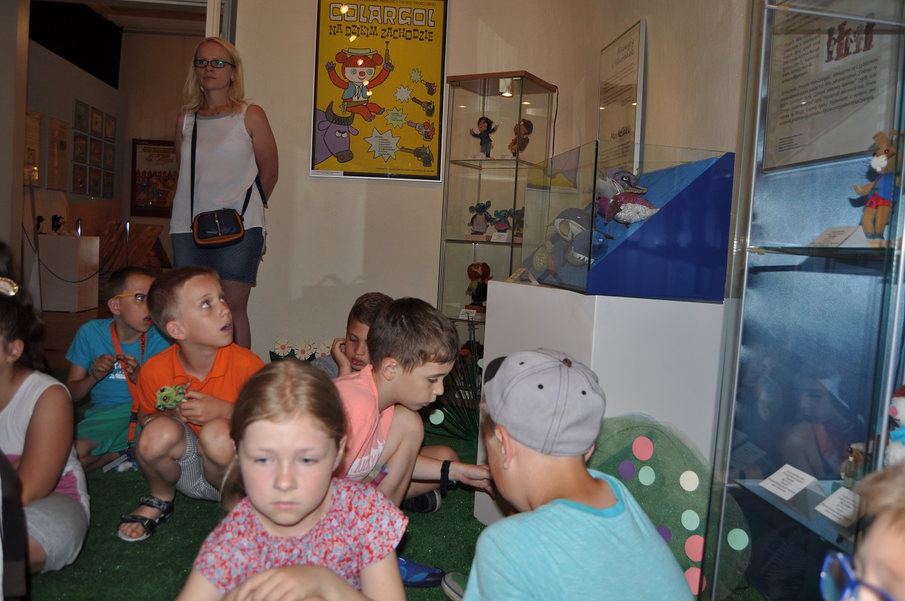 Warsztaty rozpoczęły się prezentacją multimedialną podczas której dzieci zdobyły wiedzę na temat kilku typów animacji i zapoznały się z najstarszymi polskimi dobranockami. W części warsztatowej uczestnicy własnoręcznie wykonali zabawkę optyczną, czyli taunatrop. Następnym punktem spotkania było zwiedzanie wystawy, które przyniosło uczniom wiele radości, zwłaszcza wysłuchanie na adapterze z 1964 roku - „Bambino”, opowiadania Jacusia i Agatki.