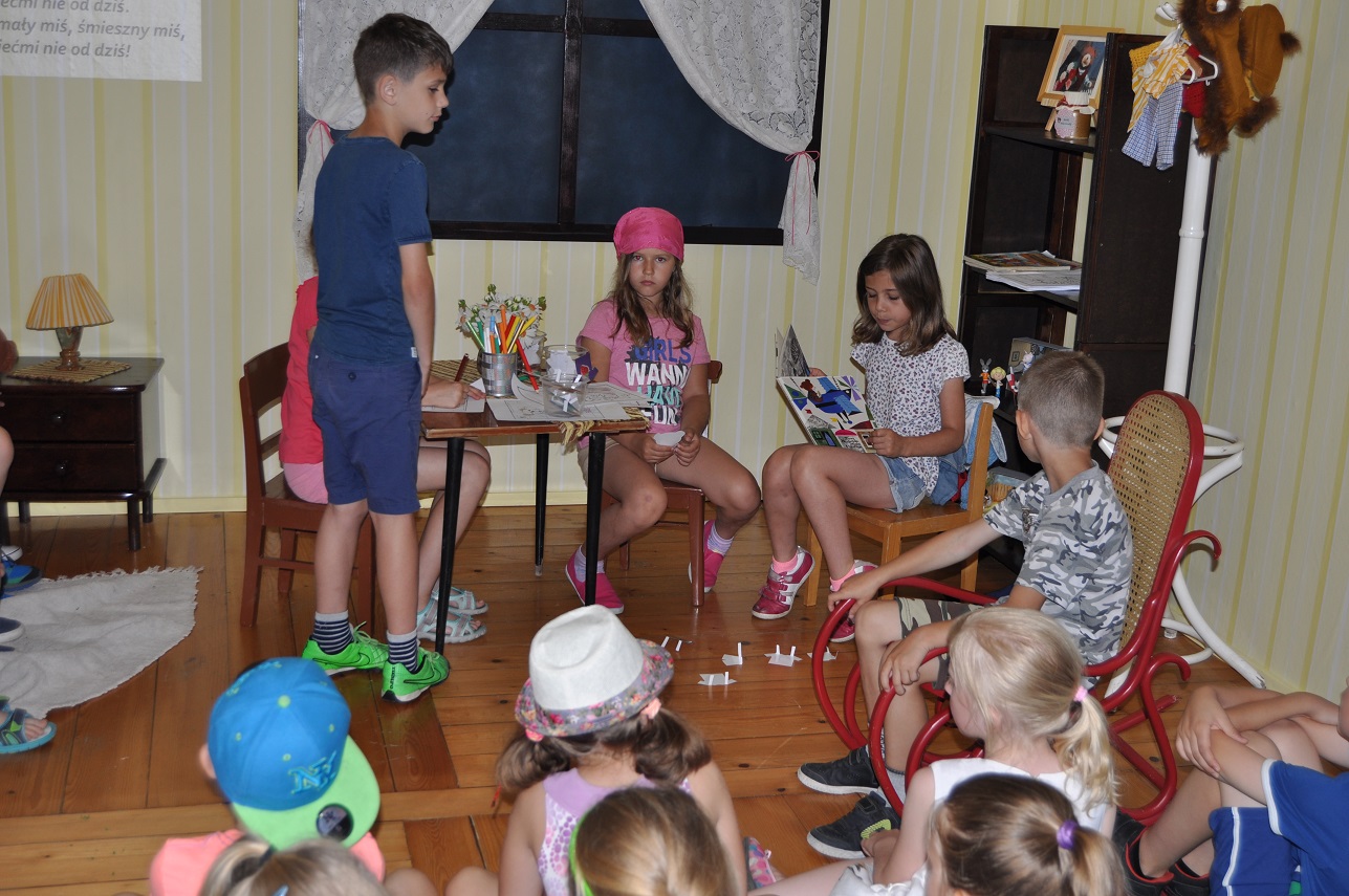 Uczniowie, na pytanie kuratora wystawy - która część ekspozycji jest najciekawsza? Jednogłośnie odpowiedzieli, że najlepiej się poczuli w pokoiku Misia Uszatka.