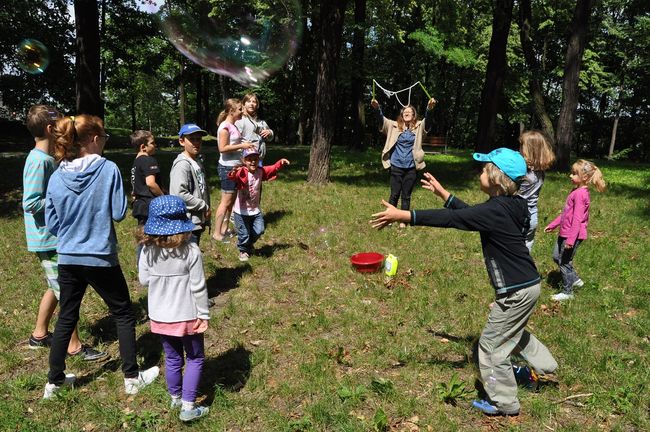 Dla osób, które poradziły sobie z nimi najszybciej czekały wyjątkowe nagrody. Następnie wszyscy udali się na Wzgórze Zamkowe, gdzie wzięli udział w grach i zabawach ruchowych - puszczali bańki, układali puzzle, grali w golfa, skakali w gumę i na skakance. Zajęcia zakończyły się historycznym spacerem do zamku i wejściem na wieżę, gdzie dzieci wysłuchały legendy o Mikołaju Korniczu Siestrzeńcu – duchu zamkowym. Serdecznie zapraszamy na kolejne spotkanie w ramach wakacyjnych warsztatów muzealnych.