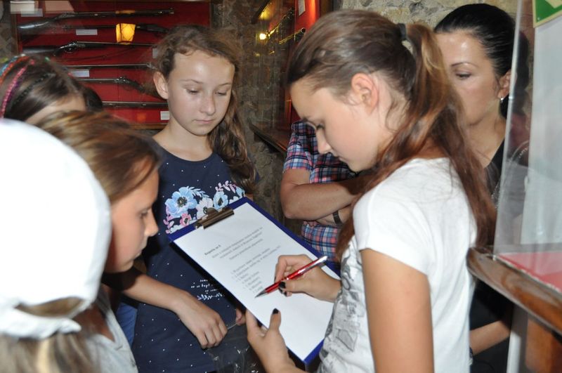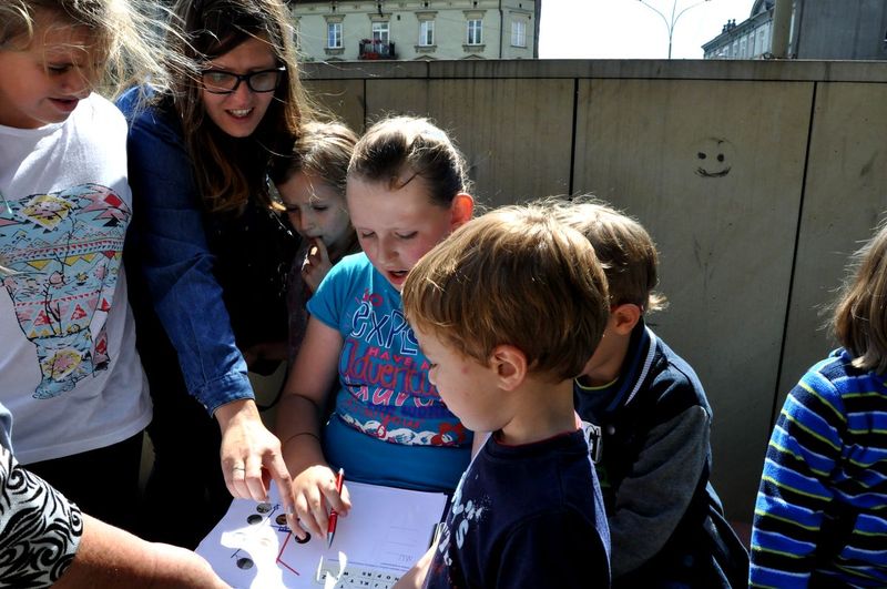 Drużyny musiały zmierzyć się z różnymi zadaniami ukrytymi w tajemniczych kopertach, wykorzystując zdobytą w trakcie spaceru wiedzę. Trzeba było odpowiedzieć na pytania związane z historią obiektów i zbiorami muzealnymi, rozwiązać krzyżówkę, odczytać tajemnicze, zaszyfrowane napisy, a przede wszystkim jak najszybciej odnaleźć miejsca, w których ukryto kolejne wskazówki. Dzięki pomocy rodziców i opiekunów udało się odpowiedzieć nawet na najtrudniejsze pytania i odnaleźć wszystkie zaznaczone na zdjęciach miejsca. Mimo trudów wędrówki - pokonywania niezliczonych schodów w Zamku, wieży i na Wzgórzu Zamkowym oraz niskiej temperatury panującej w będzińskich podziemiach - nikt nie narzekał, a rozwiązywanie zadań dostarczyło uczestnikom wiele satysfakcji. Mamy nadzieję, że była to nie tylko dobra zabawa, ale też sposób na zainteresowanie najmłodszych historią regionu.