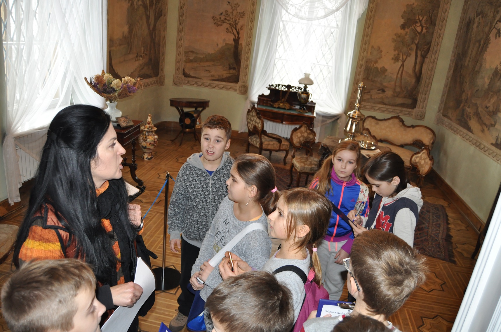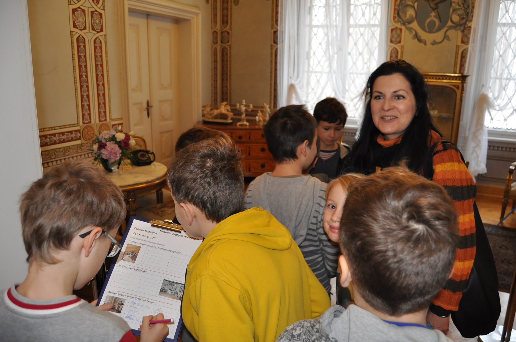 W Pałacu Mieroszewskich gościła dzisiaj grupa dzieci ze Szkoły Podstawowej nr 27  w Sosnowcu, która wzięła udział w zabawie muzealnej „Coś tu nie gra!?”- połączonej  z aktywnym zwiedzaniem wystaw. Uczestnicy zwiedzali wraz z przewodnikiem wszystkie wystawy stałe w Pałacu, poznając przeszłość regionu od czasów kultury łużyckiej po wiek XIX.  Następnie musieli wykonać zadanie – tj. odnaleźć niepasujące do wystawy przedmioty.