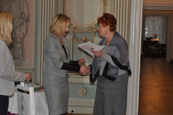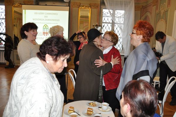a także rozpoznać na zdjęciu siebie oraz swoich współpracowników z dawnych lat. Po wspólnym obejrzeniu wnętrz pałacowych, w których na przestrzeni lat dokonało się wiele zmian, uczestnicy spotkania zostali oprowadzeni przez kuratorów po aktualnych wystawach czasowych - "Szopki krakowskie" oraz "Sztuka konserwacji". Na zakończenie, dla obecnych oraz byłych pracowników Muzeum Zagłębia, Dyrektor Wioletta Mikuła wręczyła listy gratulacyjne od Prezydenta Miasta Będzina Łukasza Komoniewskiego.
