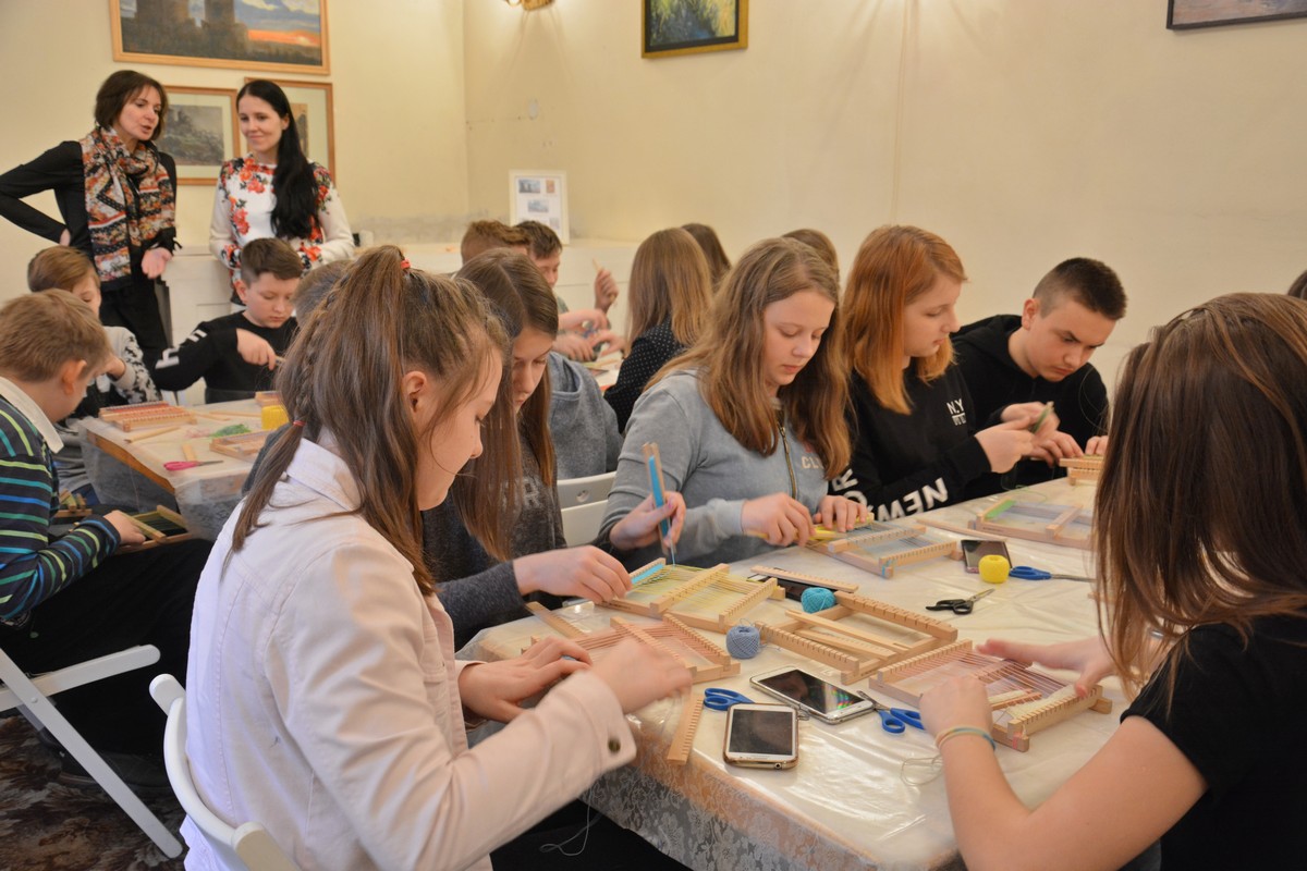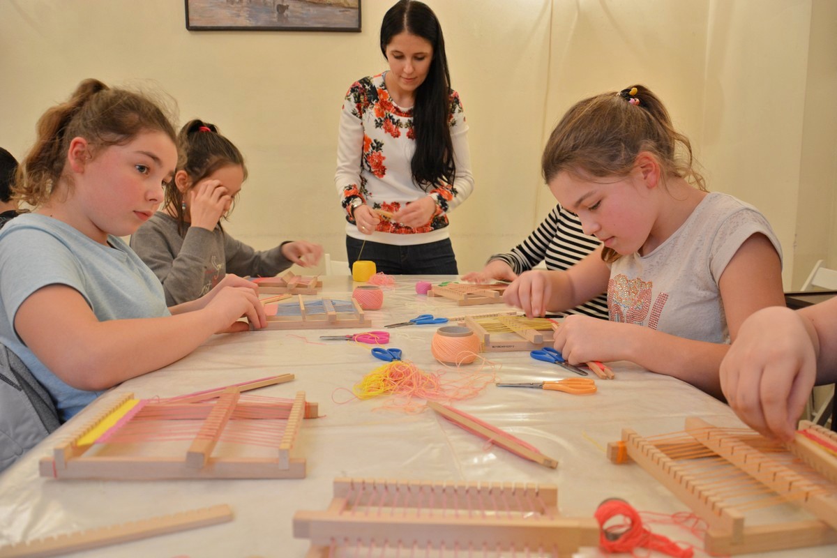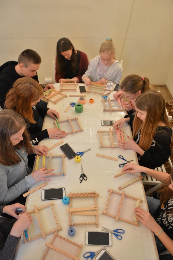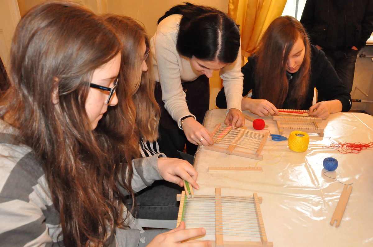 Podczas pierwszego spotkania uczniowie dowiedzieli się na czym polega tkactwo oraz jaka jest jego historia.  Tkactwo jako jedno z najstarszych zajęć ludności było powszechne w Zagłębiu Dąbrowskim do schyłku XIX w. Ośrodek będzińsko-siewierski oraz zawierciańsko-myszkowski należały do głównych ośrodków tkackich na obszarze dzisiejszego województwa śląskiego. W tkactwie ludowym podstawowymi surowcami były włókna naturalne: len i konopie oraz wełna. Podczas wizyty w „Izbie Zagłębiowskiej” (stałej wystawy etnograficznej) uczniowie poznali  narzędzia do obróbki lnu (międlicę, grzebień, kołowrotek) oraz zasady działania pionowego warsztatu tkackiego. Natomiast w części warsztatowej wykonali tkaniny, według własnego projektu na specjalnie przygotowanych ramach tkackich. Wykonane własnoręcznie tkaniny uczestnicy zabrali ze sobą, na pamiątkę wspólnie spędzonego czasu.