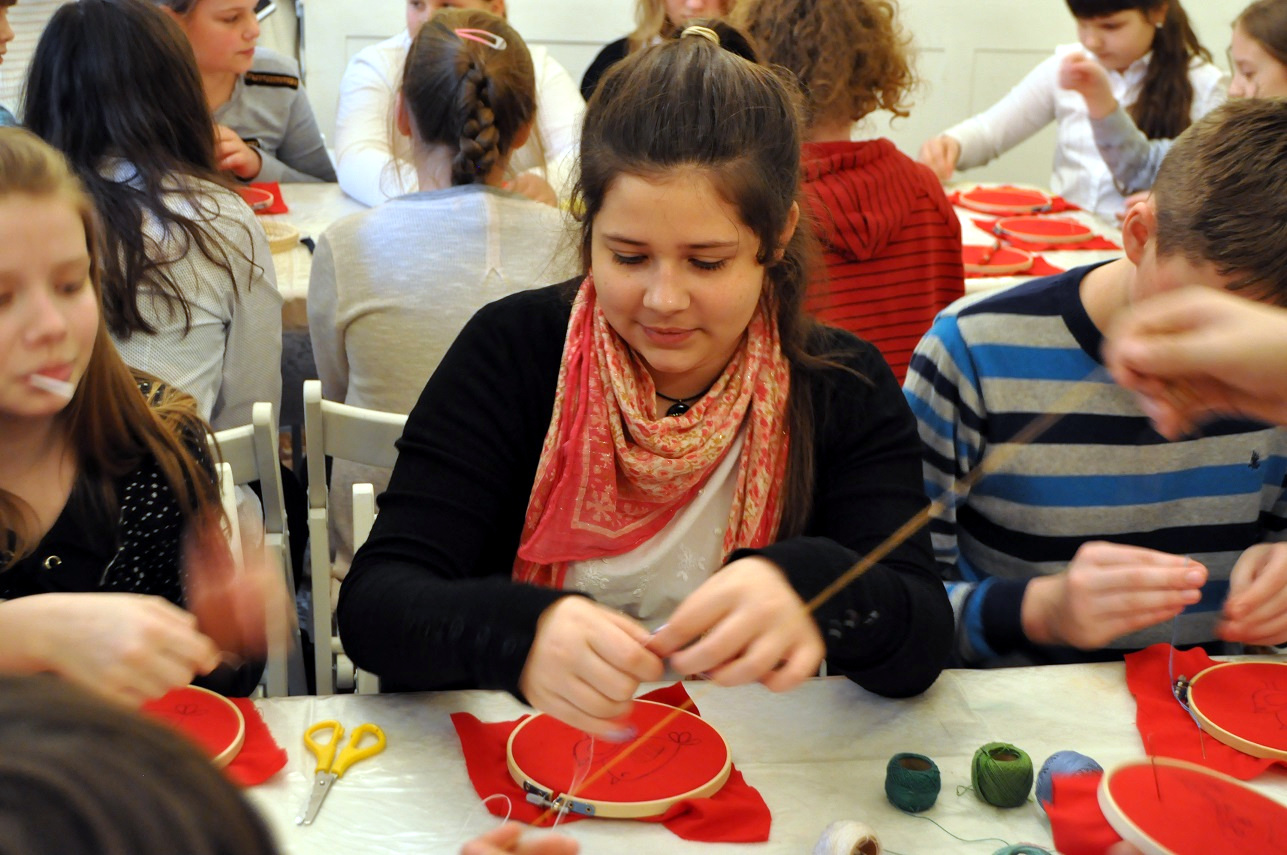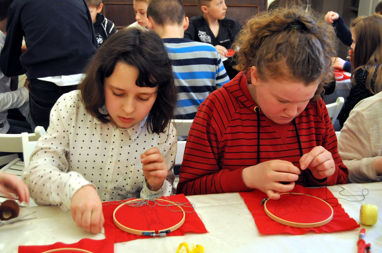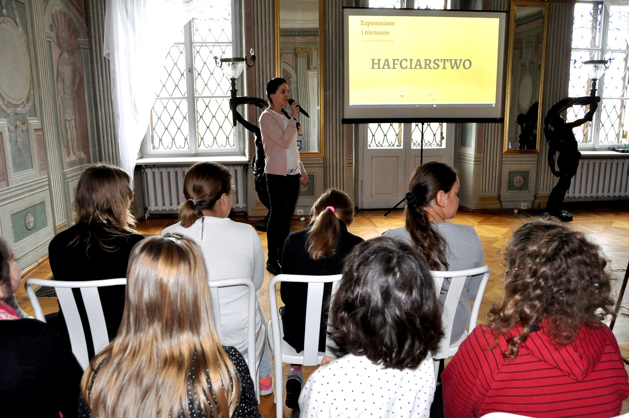 W kwietniu w Pałacu Mieroszewskich odbyło się drugie spotkanie w ramach projektu etnograficznego „Zapomniane i nieznane, poznajemy ginące zawody”, pod honorowym patronatem Prezydenta Miasta Będzina Łukasza Komoniewskiego. W tym miesiącu poznawanym przez uczniów rzemiosłem było hafciarstwo.