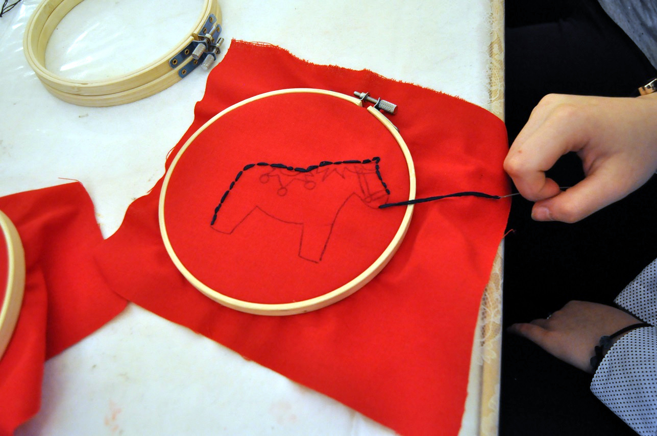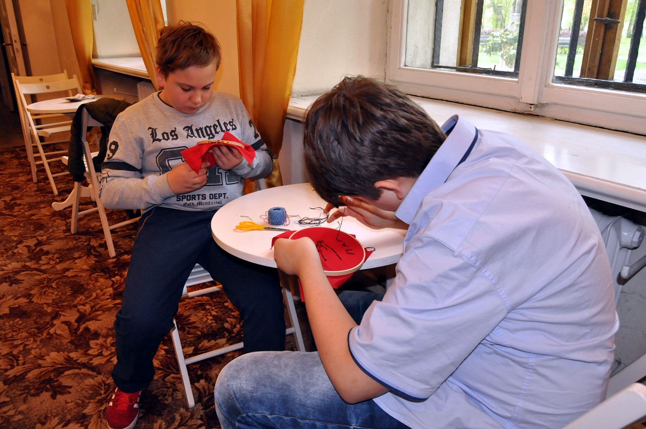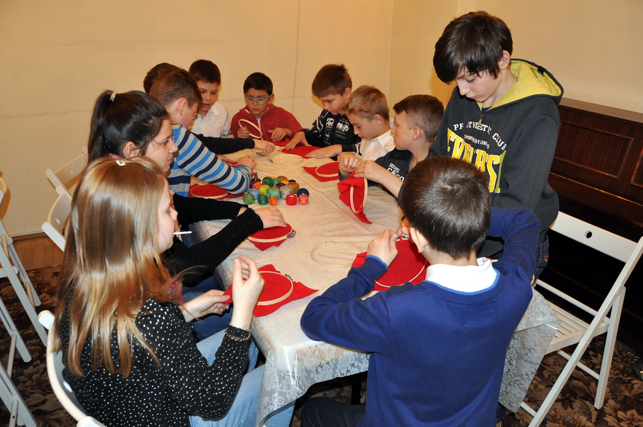 W części warsztatowej, w tajniki tego niezwykle inspirującego i ciekawego zajęcia uczniów wprowadziła Pani Kornelia Machura, z wykształcenia etnolog, dla której tego rodzaju forma krzewienia tradycji stanowi swoistą misję. Podczas warsztatów uczestnicy poznali podstawowe ściegi oraz przy użyciu tamborków, igieł, tkanin  i kolorowych nici wykonali pierwsze samodzielne wyszycia. Zaangażowanie z jakim pracowali uczniowie, pozwala żywić nadzieję, że spotkanie z haftem nie pozostanie tylko i wyłącznie doskonałą lekcją cierpliwości, rozwijającą zdolności manualne. Być może będzie to początek nowej, interesującej pasji? Tego życzymy i zachęcamy do udziału w następnym, majowym spotkaniu, podczas którego poznawać będziemy plecionkarstwo.
