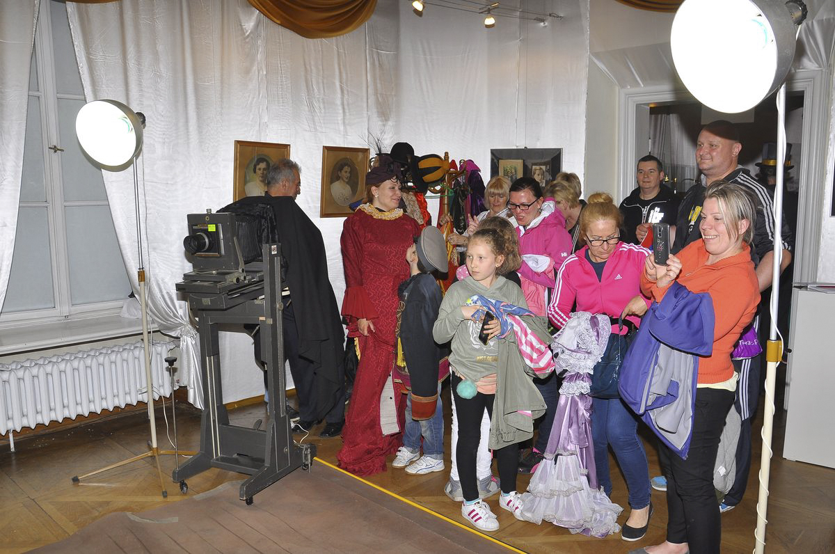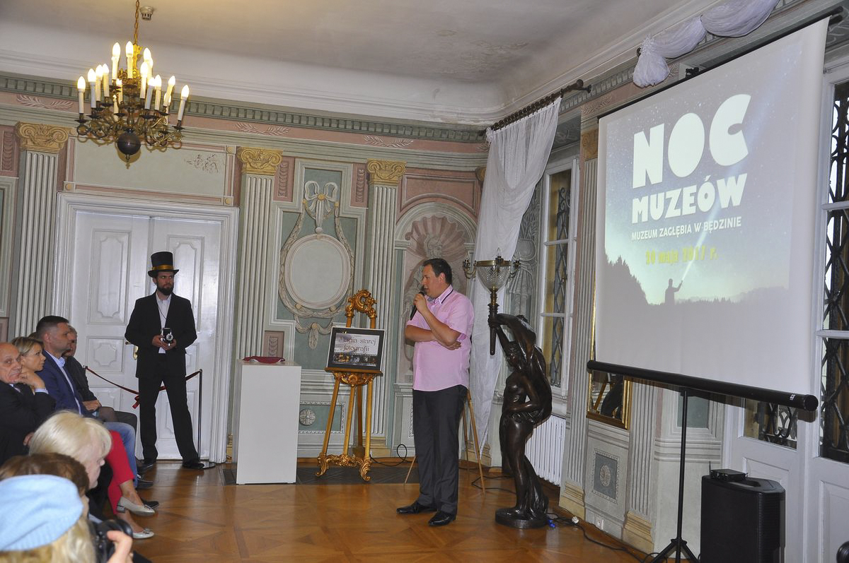 W Pałacu Mieroszewskich w magię starej fotografii wprowadziła prezentacja przygotowana przez kuratora wystawy - Joannę Kobryń przedstawiająca historię fotografii. Po prelekcji symboliczną wstęgę otwierającą Noc Muzeów przeciął Wiceprezydent Będzina Rafał Adamczyk. Uroczyste otwarcie było zarazem wernisażem wystawy "Magia Starej Fotografii", na której zaprezentowano ponad 100 eksponatów, w tym aparaty fotograficzne i sprzęt fotograficzny. Warto wspomnieć, że pomysłodawcą i koordynatorem wystawy był Adam Sygacz. Na odwiedzających pałac czekało epokowe atelier fotograficzne, gdzie każdy mógł przebrać się w historyczne stroje i przenosząc się w czasie zrobić sobie pamiątkowe zdjęcie. Dzieci także mogły poczuć odrobinę magii fotografii na przygotowanych dla nich zajęciach, gdzie przebrane w strój czarodzieja na tle zagłębiowskiej chaty tworzyły swoje własne magiczne kadry. Dodatkową atrakcją fotograficznej Nocy Muzeów były spotkania z zaproszonymi gośćmi - fotografem mody i mistrzami fotoreportażu. Zaledwie 25-letni Bastek Czernek opowiadał o swoich niemałych doświadczeniach w dziedzinie fotografii mody. Maciej Jarzębiński - fotoreporter m.in. Gazety Wyborczej prezentował ciekawe cykle zdjęć i chwile zatrzymane w kadrze. O zdjęciach i ciekawostkach ze swojej pracy opowiadał fotoreporter Bogdan Kułakowski - laureat wyróżnienia w konkursie World Press Photo w 1980 roku. Ostatnim gościem był jeden z najlepszych śląskich fotoreporterów Andrzej Grygiel, który spośród setek tysięcy fotografii prezentował te opisujące zmiany na Śląsku i w Zagłębiu na przestrzeni ostatnich dziesięcioleci.