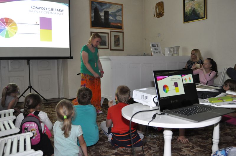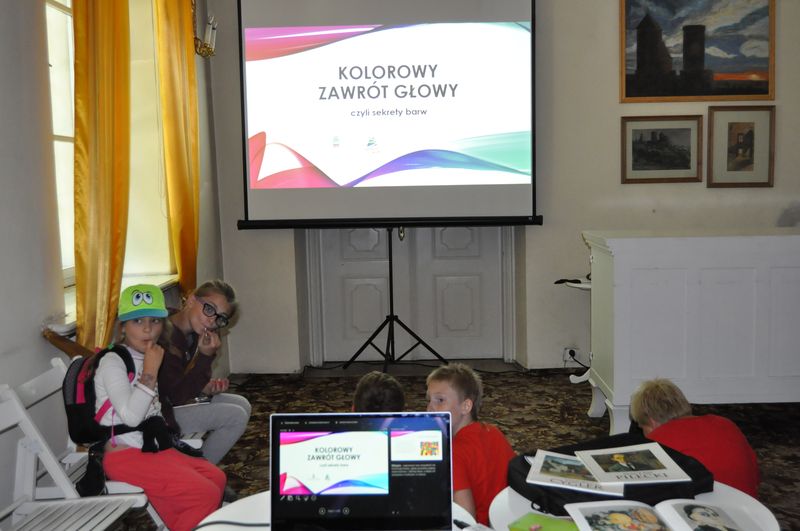 Kolejne zajęcia ”Kolorowy zawrót głowy”  dotyczyły  znaczenia barw w kulturze i sztuce. Omawiano teorię barw, różnice kulturowe w postrzeganiu  kolorów  oraz  zagadnienia związane z psychologią barw. Pomimo dość trudnego, jak dla dzieci tematu, panowała swobodna, radosna atmosfera, zajęcia połączone z prezentacją multimedialną okazały się bardzo ciekawe – pobudziły do dyskusji i wywołały   wiele  pozytywnych emocji.