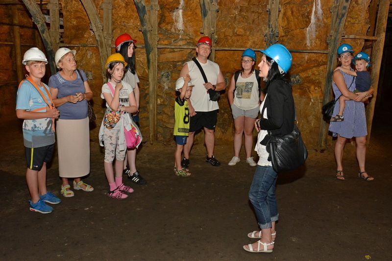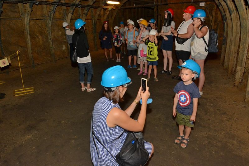 Uczestnicy kolejnych „Środowych spotkań…” tym razem zebrali się przed wejściem do Podziemi Będzińskich.