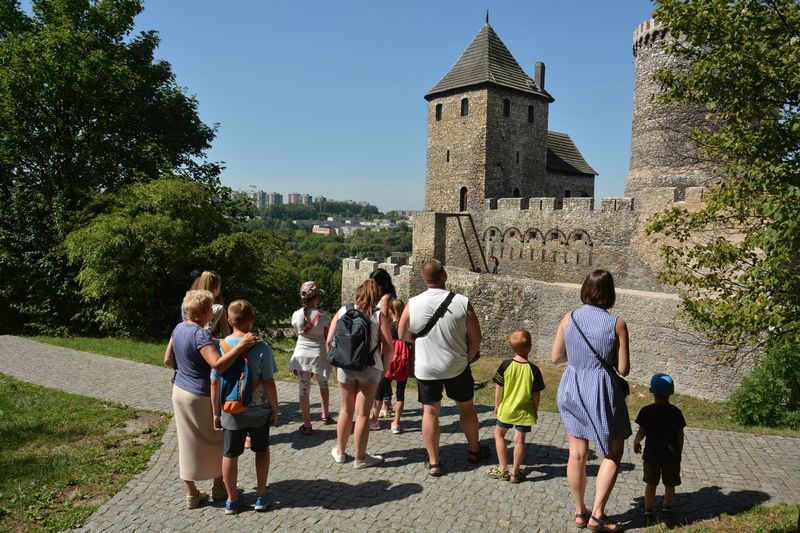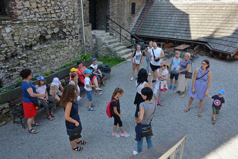 Po zwiedzeniu obiektu udali się na historyczny spacer po Wzgórzu Zamkowym, gdzie poznali wielowiekową historię tego miejsca, rozpoczynającą się w okresie kultury łużyckiej. Spacer zakończył się wejściem na wieżę zamkową, skąd podziwiać można rozległą panoramę Będzina.