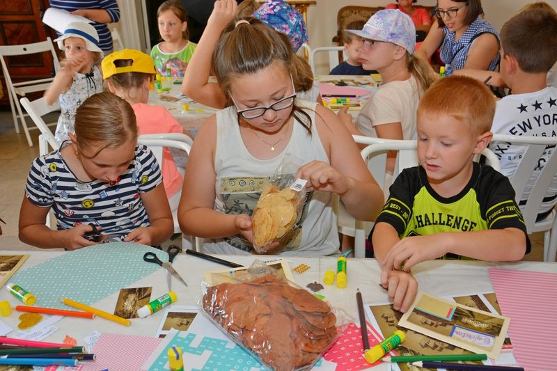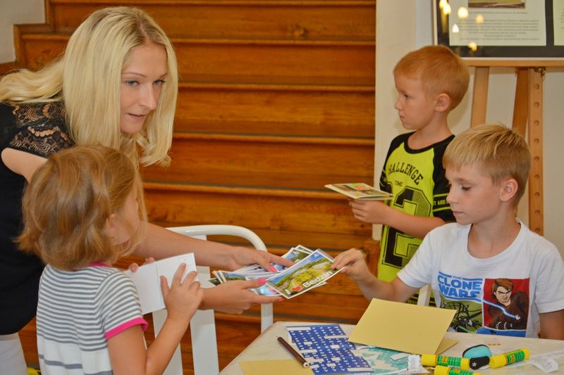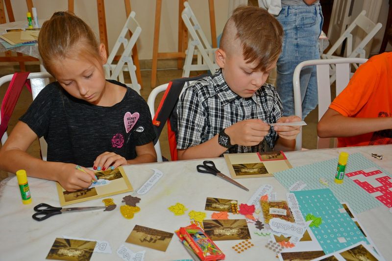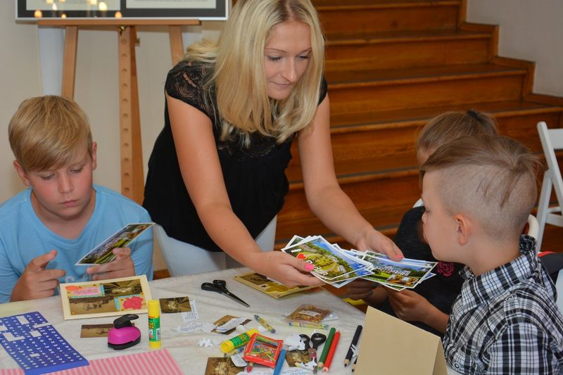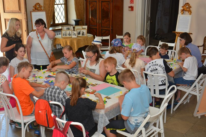 W drugiej części zajęć dzieci wzięły udział w warsztatach plastycznych, na których wykonywały własnoręcznie stare pocztówki Będzina w technice scrapbookingu. Każda pocztówka zawierała zdjęcia Zamku oraz Pałacu Mieroszewskich. Zadaniem uczestników było ozdobienie pracy i nadanie jej indywidualnego charakteru. Na kolejne zajęcia zapraszamy już za tydzień.