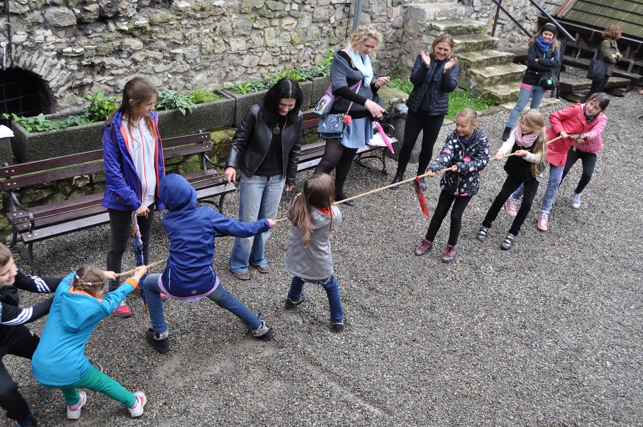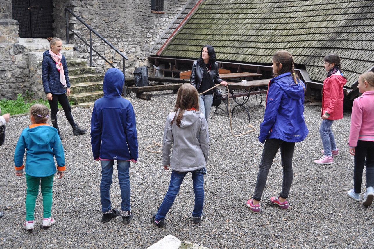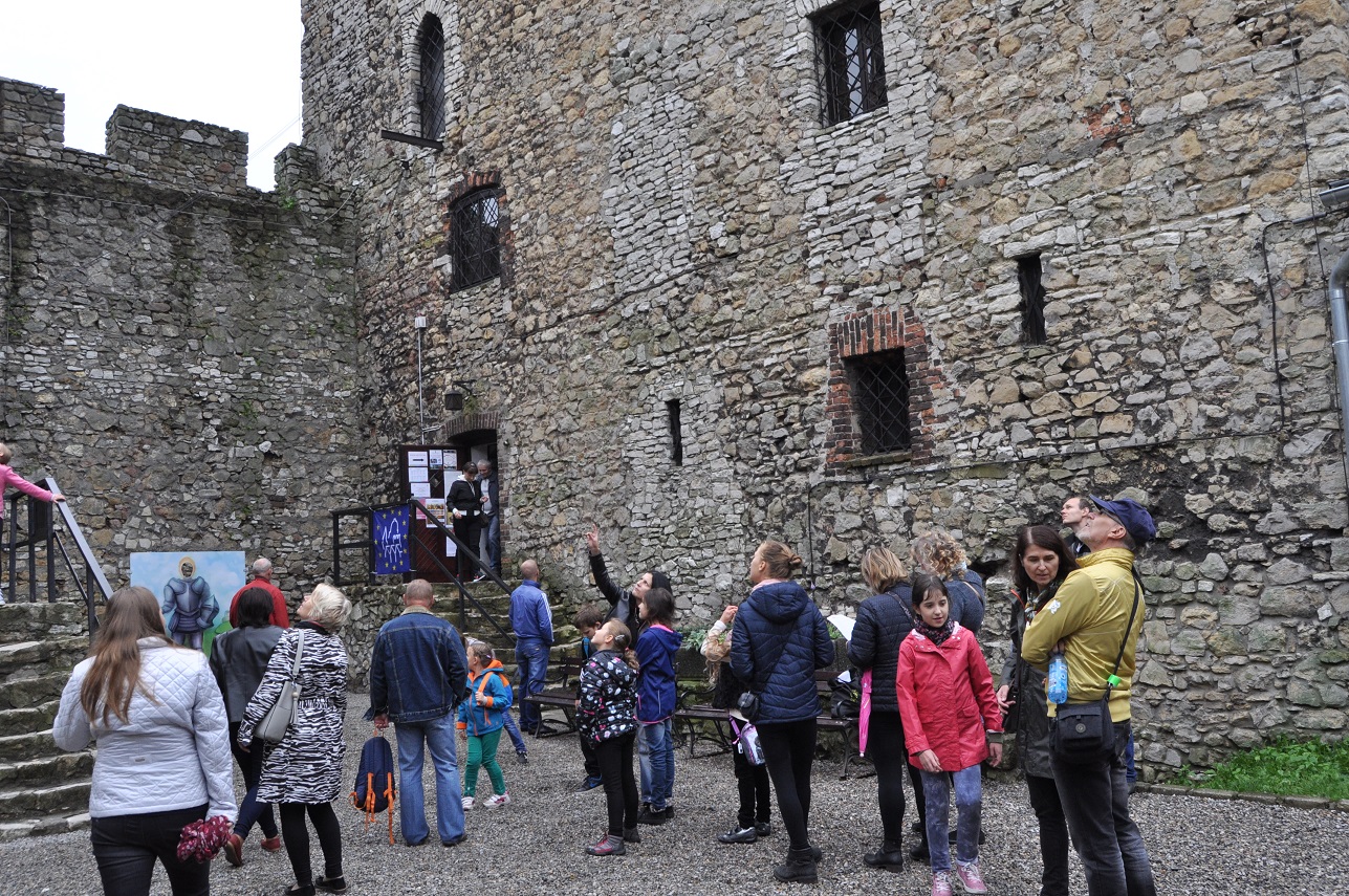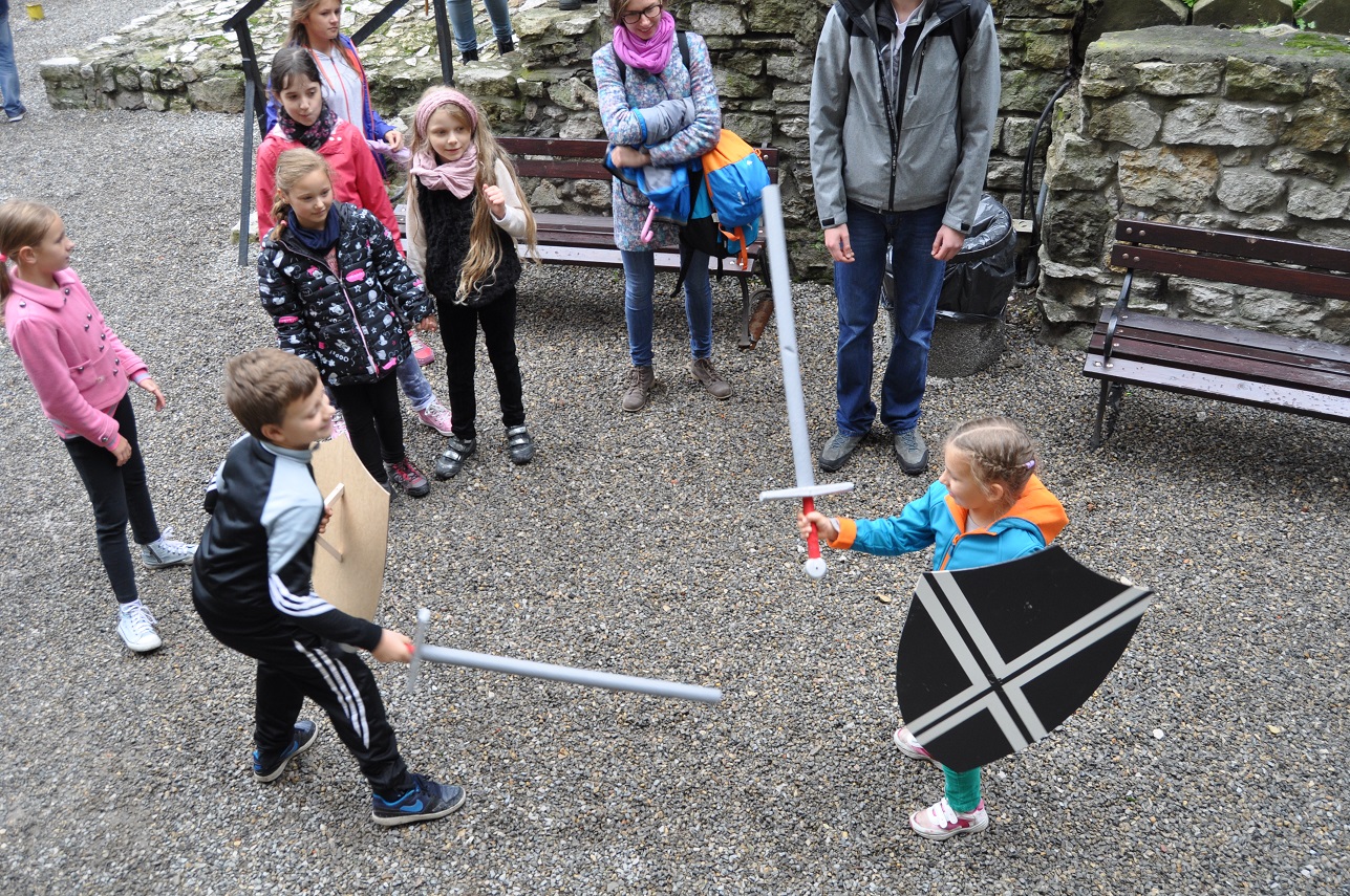 W trakcie spotkania zaprezentowano ślady będzińskiego średniowiecza w terenie podczas trzech krótkich pogadanek: Od grodu do zamku; Górny i dolny zamek w czasach króla Kazimierza; Miasto lokacyjne. Dla dzieci uczestniczących w zajęciach przygotowano zestaw zabaw tzw. plebejskich, mających swe korzenie w epoce średniowiecza lub z tym okresem związanych: gry zręcznościowe (rzut do celu, rzut na odległość, zabawy z użyciem liny), puszczanie baniek mydlanych za pomocą naturalnej słomki, wspólne kolorowanie wizerunku smoka na płótnie, walka na miecze z gąbki, zdobienie bawełnianej nałęczki.