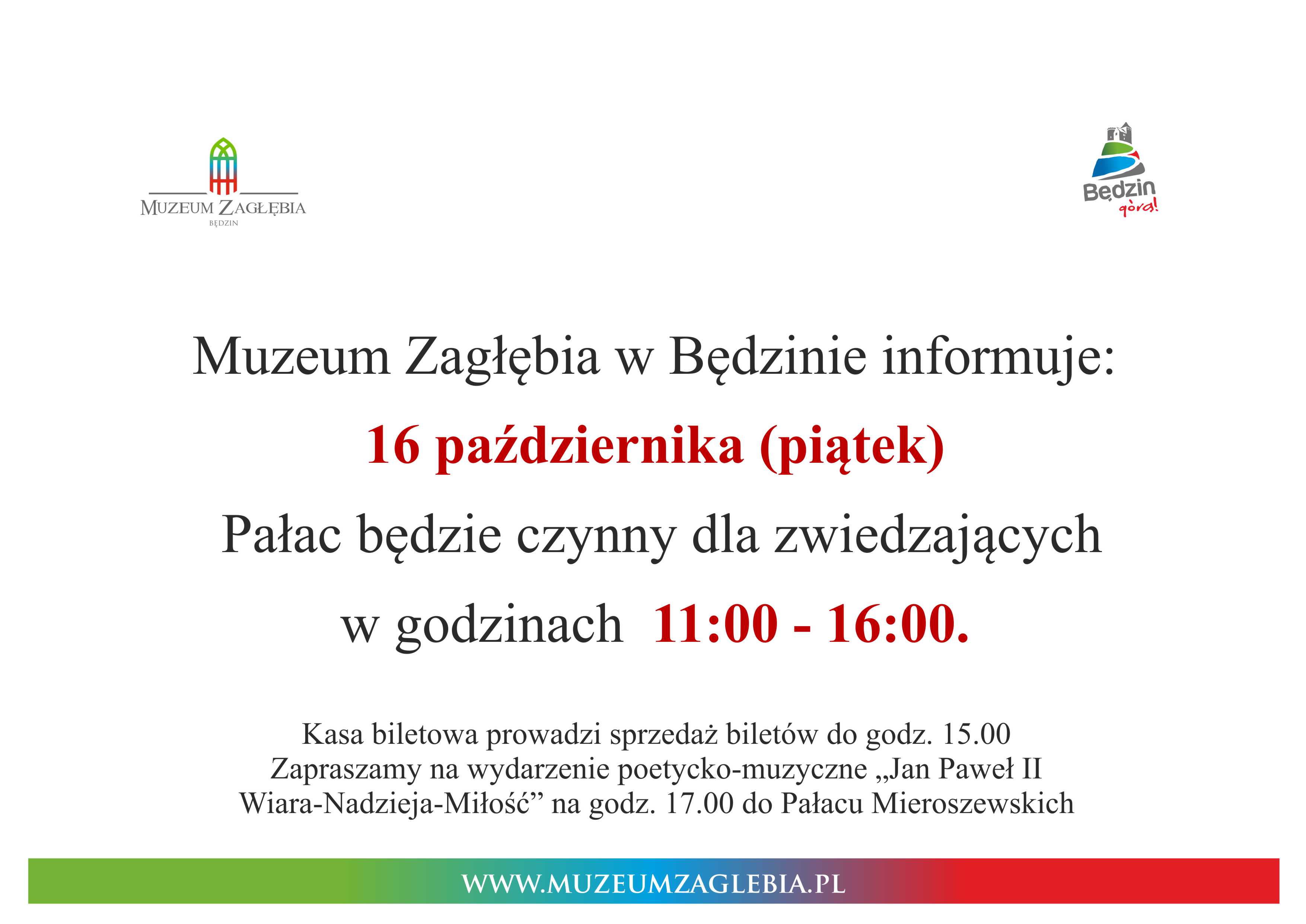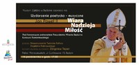 Zapraszamy bardzo serdecznie na jutrzejsze wydarzenie poetycko-muzyczne poświęcone papieżowi Janowi Pawłowi II. Na scenie będziemy mogli usłyszeć zagłębiowskiego poetę, pieśniarza i barda – Zbigniewa Tepera, twórcę wielu projektów kulturalnych realizowanych dla Miasta Sosnowca oraz dla miast Zagłębia Dąbrowskiego. Swoje wiersze zaprezentują poeci Stowarzyszenia Twórców Kultury Zagłębia Dąbrowskiego w składzie Krystyna Borkowska, Jolanta Leks – Bugajska, Zofia Cencek, Maria Herman, Wanda Halina Kusztyb, Jerzy Georg Lewestam, Teresa Orłowska i Jolanta Wychowaniec.