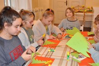 Na dworze szaro, trochę ponuro, a w Pałacu Mieroszewskich bardzo świątecznie, ponieważ nasi uczestnicy warsztatów wykonują piękne pocztówki bożonarodzeniowe.