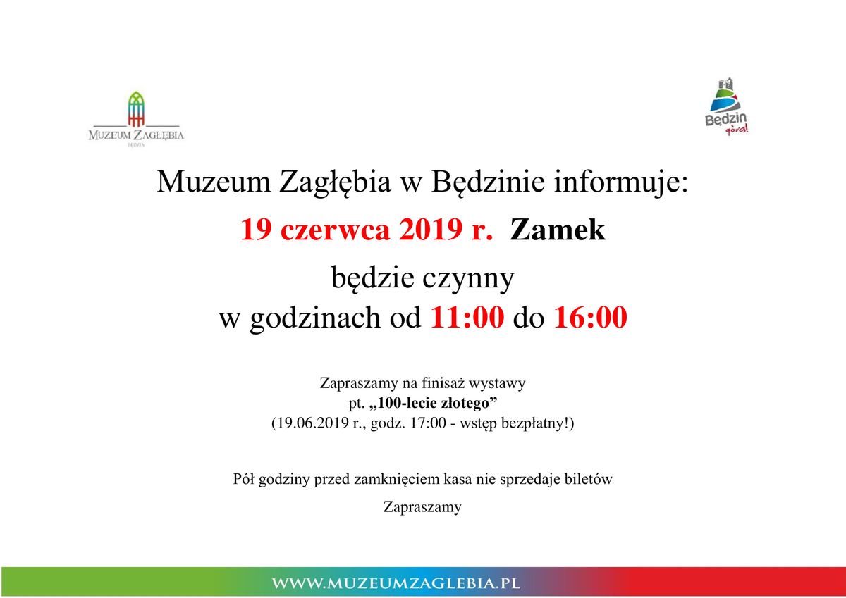 Serdecznie zapraszamy na finisaż wystawy numizmatycznej „100- lecie Złotego” pod patronatem Prezydenta Miasta Będzina Łukasza Komoniewskiego, który odbędzie się 19 czerwca 2019 roku,w będzińskim Zamku o godz. 17.00.