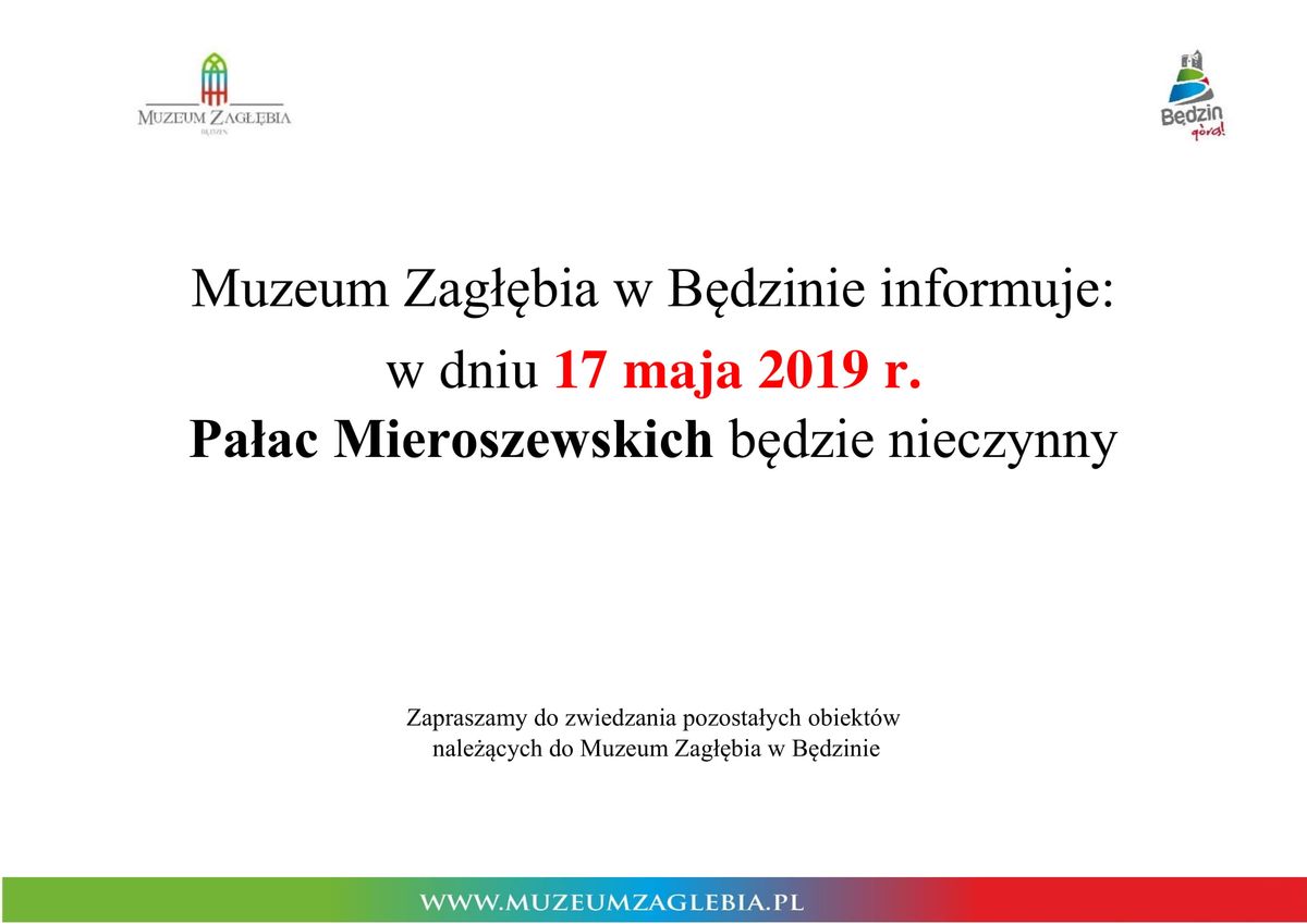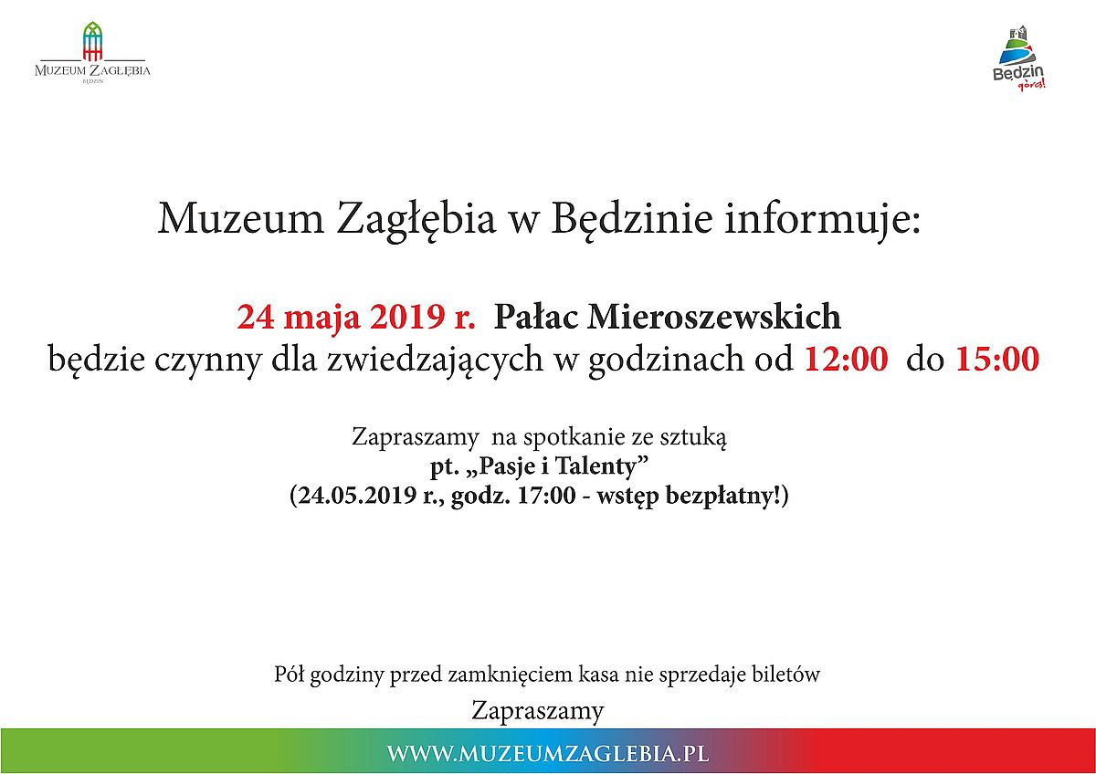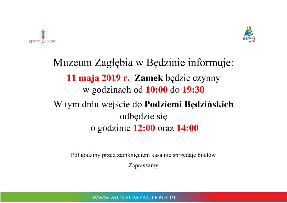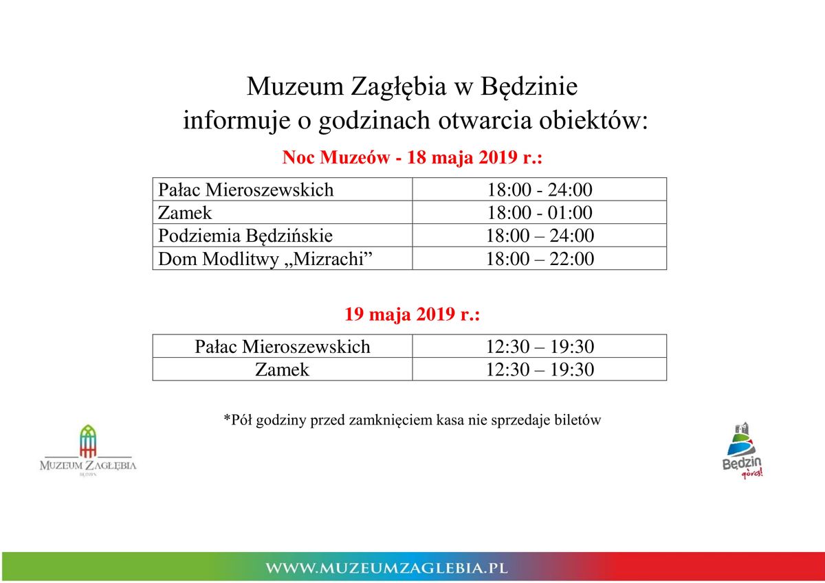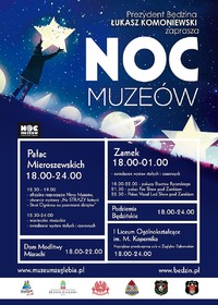 Prezydent Miasta Będzina Łukasz Komoniewski zaprasza na Noc Muzeów, która odbędzie się 18 maja w Pałacu Mieroszewskich, w zamku, w podziemiach będzińskich oraz w Domu Modlitwy Mizrachi.